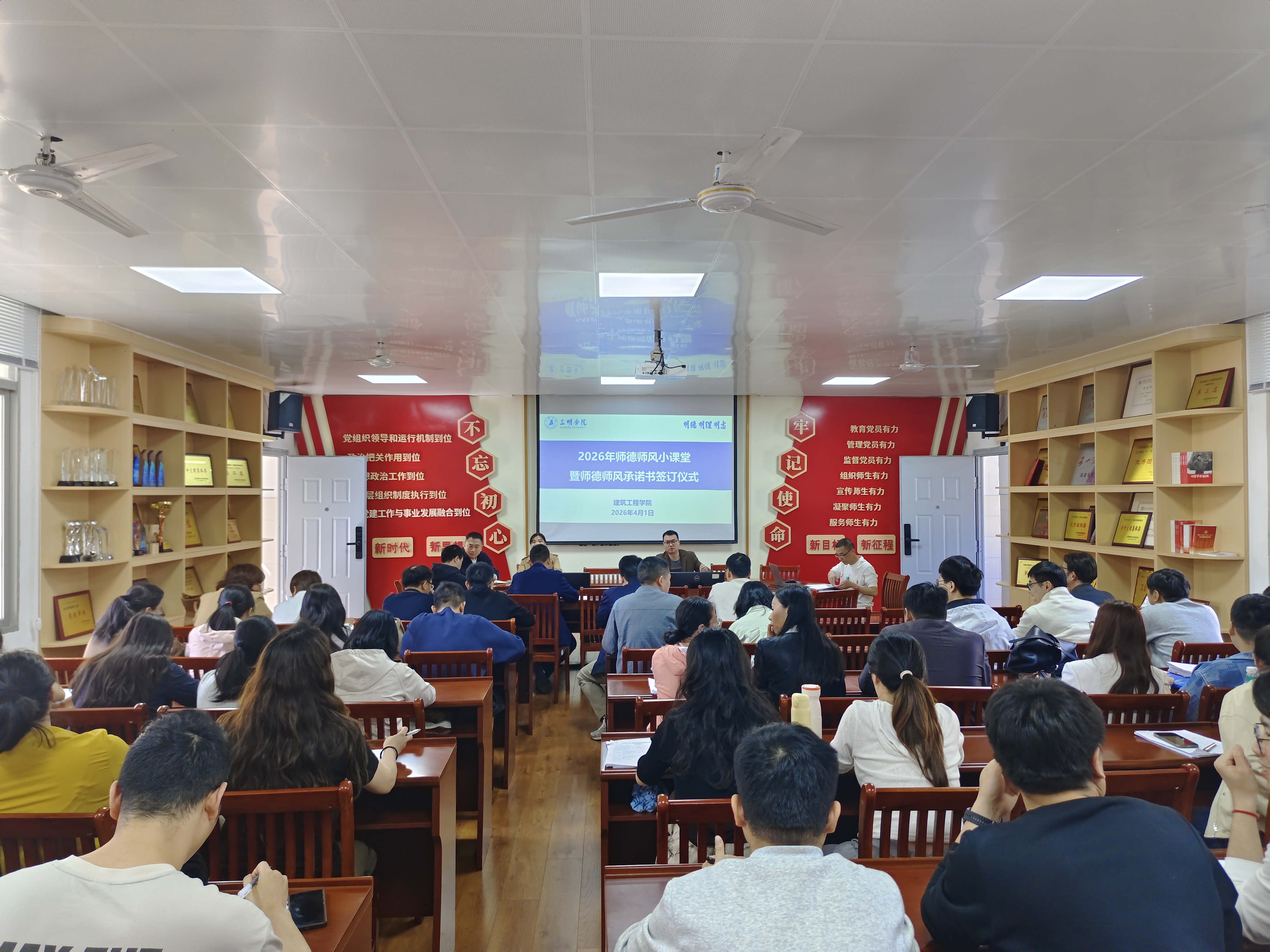 会议首先聚焦师德师风建设,与会人员深入学习了新时代高校教师职业行为十项准则等文件精神,结合典型案例分析,强调师德师风是评价教师队伍素质的第一标准。会议要求全体教师自觉增强“四个意识”,坚定“四个自信”,做到“两个维护”,恪守职业道德,以德立身、以德立学、以德施教,争做“四有”好老师。全体教师在会议中签订了2026年师德师风承诺书。