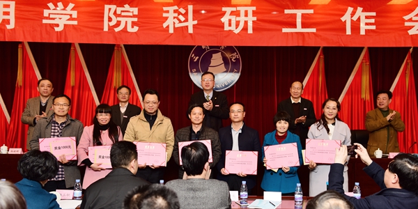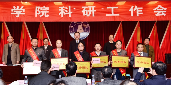会议表彰了2015年度科研先进单位、校县合作服务地方优秀团队和优秀科研工作者,校领导为获奖单位、团队和个人颁发了奖牌、奖状和奖金。