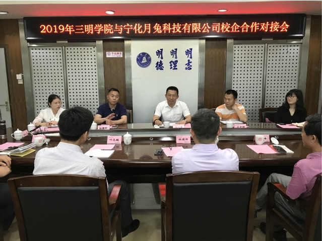 5月16日上午,宁化月兔科技有限公司执行总裁孙小勇一行5人来我校洽谈合作事宜,副校长林建伟、科研处(地方合作办)、经济与管理学院、信息与工程学院、机电工程学院、创新创造创业学院、继续教育学院等相关单位负责人参加此次对接会。