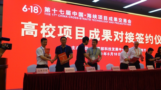 开幕式当天,教育部科技发展中心、省教育厅联合举办了高校科技项目成果对接签约仪式,我校成功签约2个项目:与青岛威控电气有限公司对接签约“微电网光伏直流输入环节MPPT-BOOST变换器”项目成果;与福建三农新材料有限责任公司对接签约“短碳链(C6)全氟己基乙基碘衍生物合成的关键技术研究及产业化”项目成果,两项签约投资总额合计7200万,有效地助推企业转型发展。在高校成果展馆展示62项优秀成果项目中,我校境外合作综合展区1项、“互联网+”展区优秀展示项目1项、网上优秀展示项目60项。另外,我校还编印了三明学院科技成果汇编材料,在展区进行推介。
