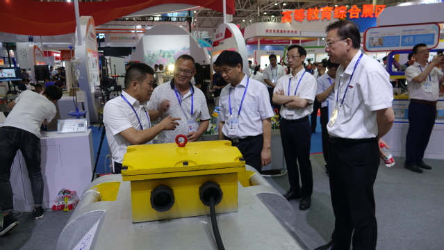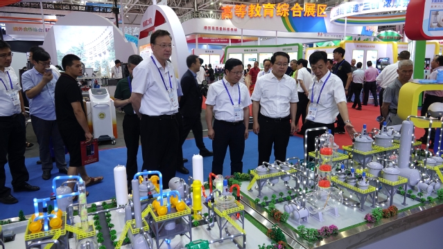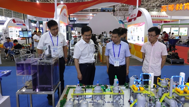 在“绿色新材料”展区中,氟化工成果“含氟多氧杂羧酸表面活性剂科研成果产业化生产工艺模型”引人驻足观看,该项目是我校和福建海斯福科研团队产学研协同攻关取得的原创技术,在福建海斯福化工有限公司成功实现产业化,成为该公司新的利润增长点和核心竞争点,该模型动态完整模拟了含氟多氧杂羧酸表面活性剂工业生产过程,为企业职工技术培训和我校专业人才培养提供极佳的实训案例;在“绿色新能源智能制造”展区,我校展示了“垂直轴高效风力发电机组研发”、“柔性材料旋切刀辊”项目,这是依托我校美丽中国发展研究院金凤凰科研团队研发的达到国际先进水平优秀成果。现场还展示了我校“绿色智能互联”、“绿色工业设计”作品,这些作品贴近人民生活,实用性高,具有很高的推广价值。