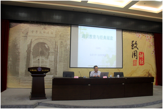 王余光教授解读了通识教育的含义、背景、疑虑与困惑,例举通识教育在北京大学的具体应用,强调在本科阶段重视通识、突出能力与素质,诠释了通识教育与经典阅读的关系,他认为,通识教育就是经典教育,通识教育就是提升对文化的认同感,通过经典阅读使青年尊重中国文化,增强文化自信,培养读书的种子。