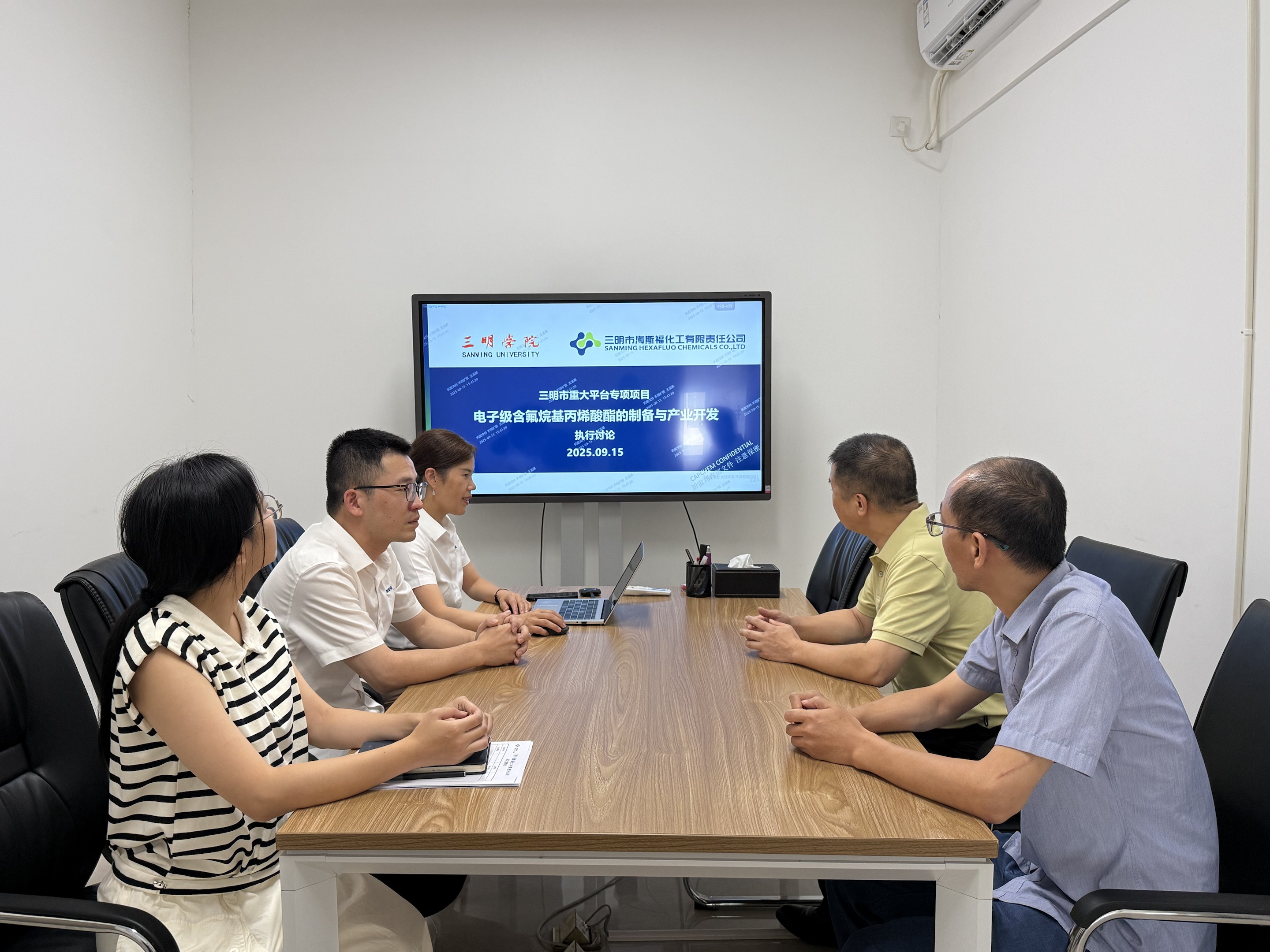 9月15日,资源与化工学院院长李奇勇教授、副院长董国文教授赴海斯福公司,就市级重大科技创新平台科研专项《电子级含氟烷基丙烯酸酯的制备与产业开发》项目开展研讨调研。