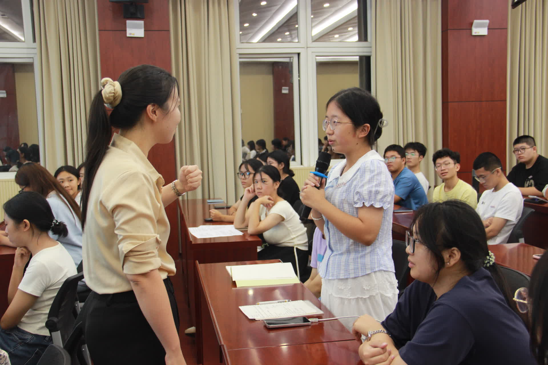 白云老师结合自身公费师范生经历,分享大学学习经验以及从教心得,让新生直观认知“思政人”责任与价值。针对新生“专业学什么”“未来做什么”“大学怎么学”等困惑,她以全新视角带新生认识专业课程,引导学生从“被动”转为“主动”学习,从“应试”转向全面发展,认真规划大一到大四的学习重点,自觉做到知行合一。白云老师以深厚的理论知识和丰富的实践经验,深入浅出,既给出具体可行的建议,也鼓励大家保持对专业的热爱与思考,现场氛围热烈融洽。