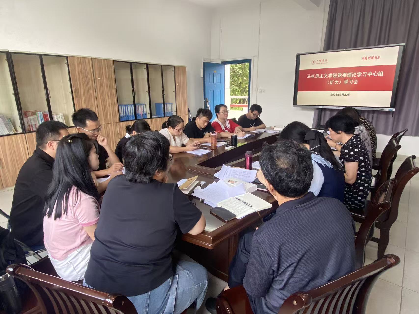 9月22日上午,马克思主义学院召开党委理论学习中心组(扩大)会议,对《习近平谈治国理政》(第五卷)第1-7专题进行了集中学习研讨。院领导,各科室、各党支部书记、教研室(系)主任参加了本次学习会,会议由院党委书记主持。