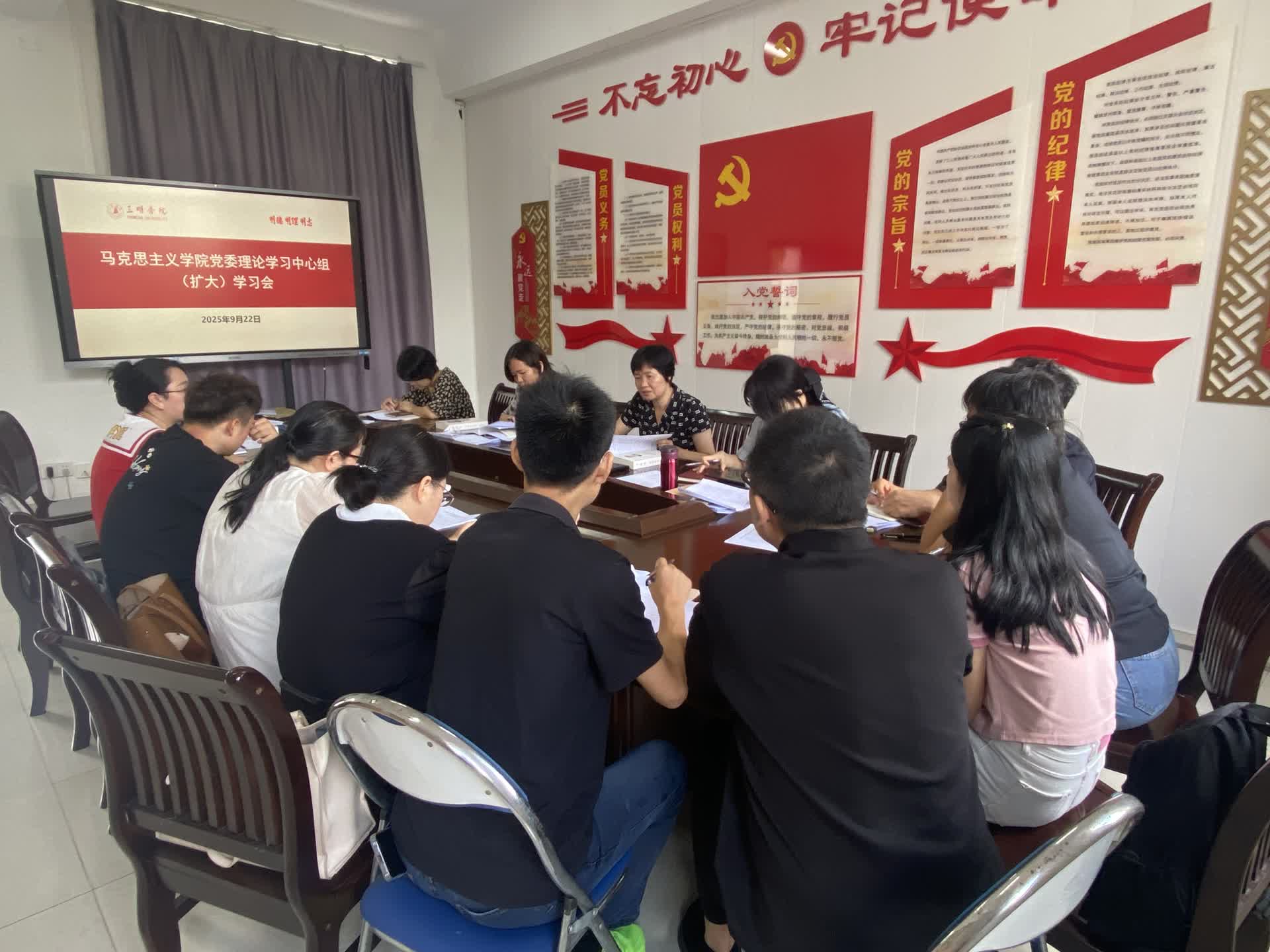 9月22日上午,马克思主义学院召开党委理论学习中心组(扩大)会议,对《习近平谈治国理政》(第五卷)第1-7专题进行了集中学习研讨。院领导,各科室、各党支部书记、教研室(系)主任参加了本次学习会,会议由院党委书记主持。