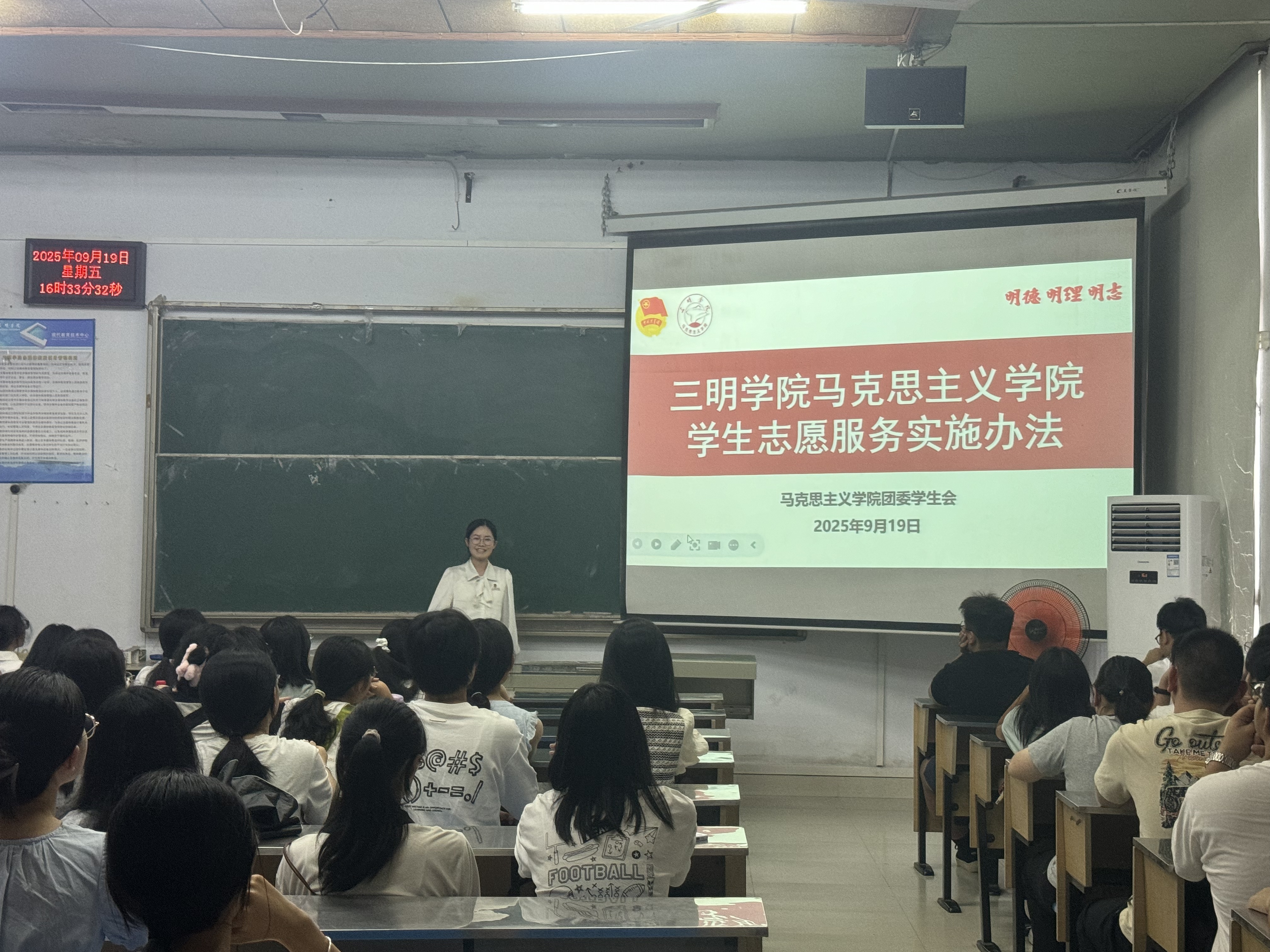 9月19日下午马克思主义学院全体新生于明德楼(二)407开展“筑梦新起点,卓越新征程”主题班会。