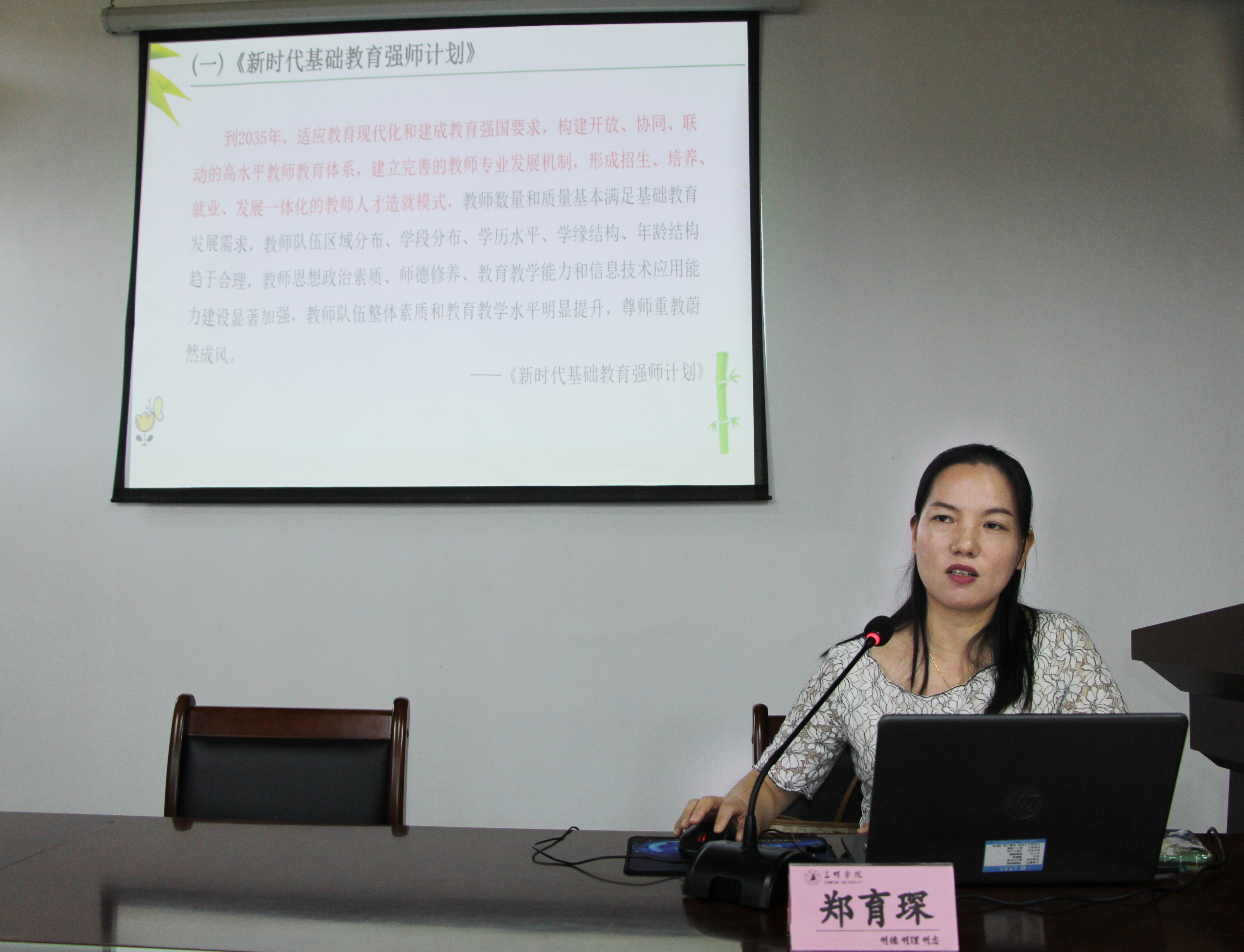 6月20日下午,闽南师范学院马克思主义学院郑育琛教授莅临马克思主义学院,作题为“‘三人行’工作室模式构建思政课师生成长共同体的实践探索”的专题讲座。讲座由学院副院长欧阳秀敏教授主持,全院教师参加。