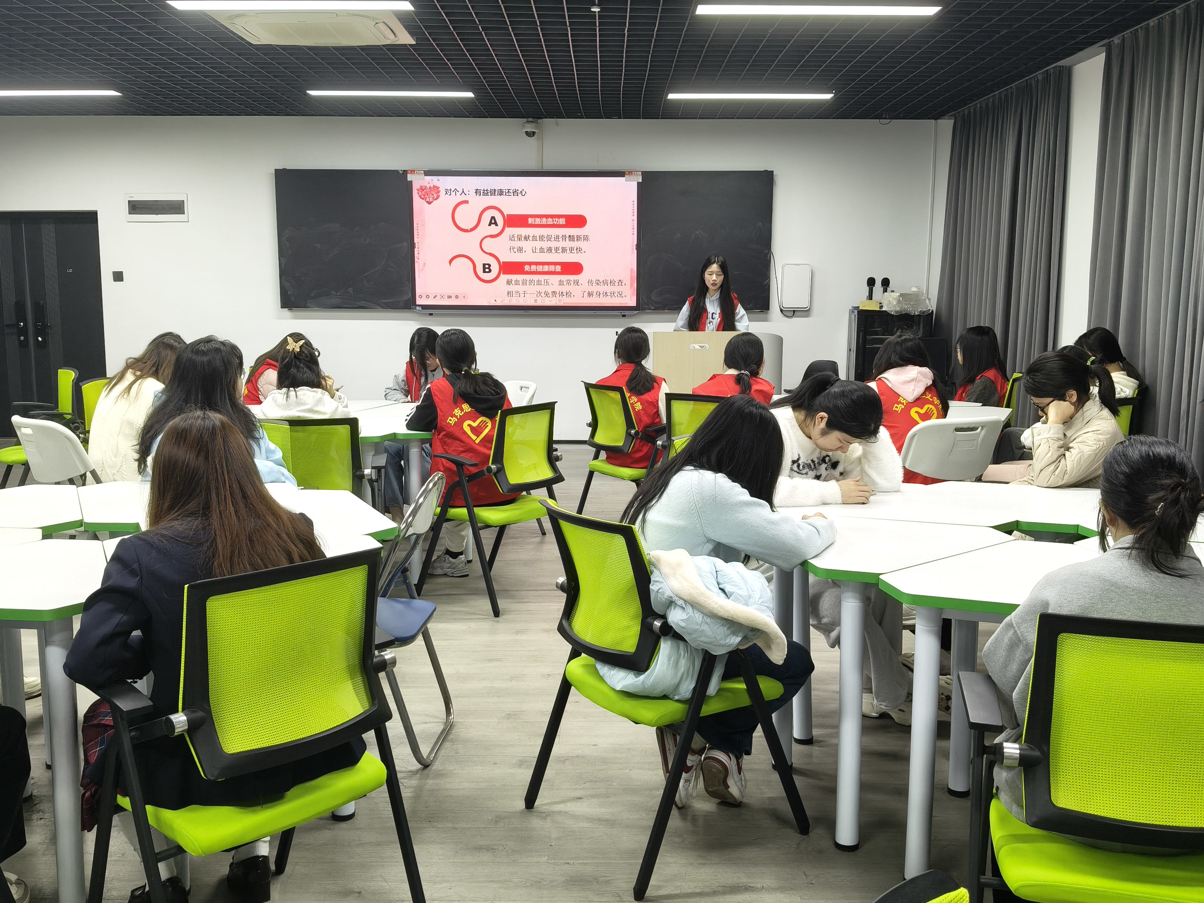 为增强青年学子的社会责任感与担当意识,12月11日晚,马克思主义学院于明德楼(二)107教室开展以“献点滴热血,筑人间暖流”为主题的无偿献血知识科普活动。