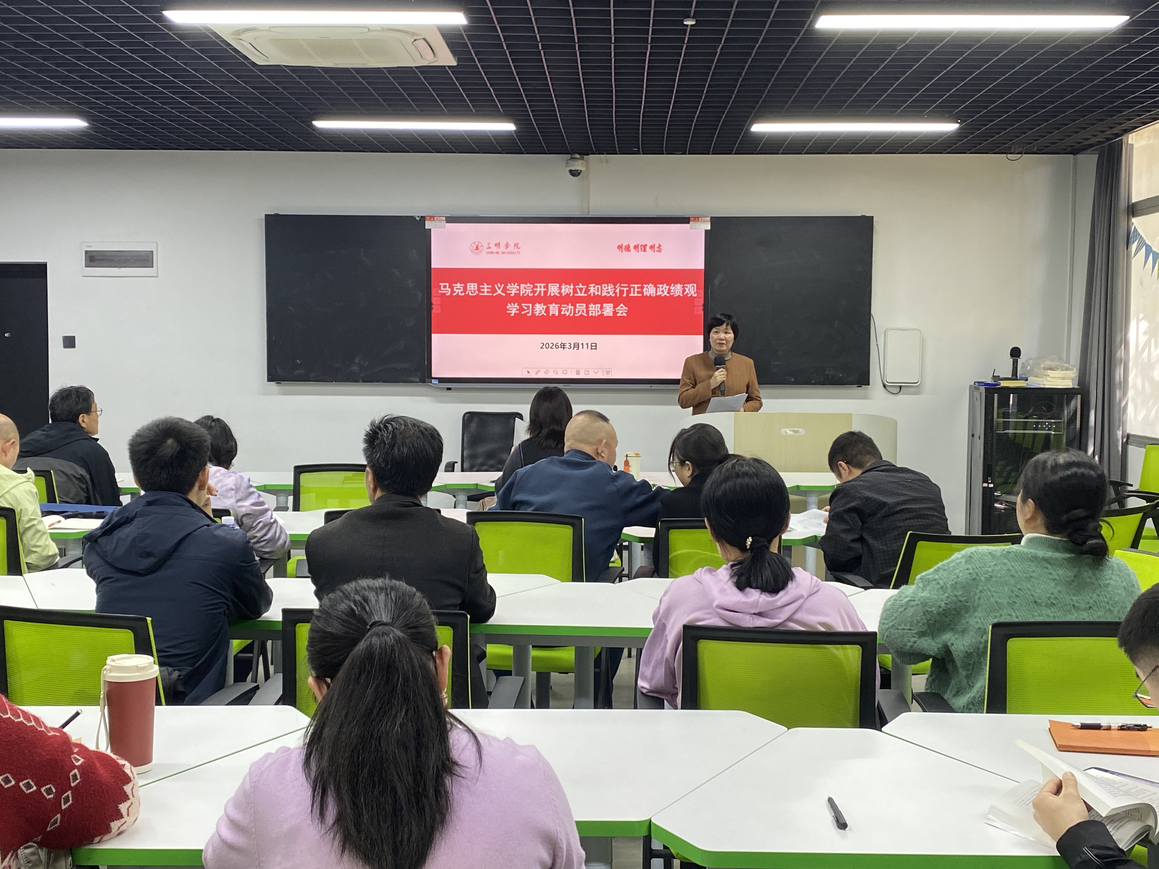 会议强调,要牢牢把握政绩为谁而树、树什么样的政绩、靠什么树政绩这一根本问题,把正确政绩观贯穿学院教学科研、人才培养、学科建设、党的建设各方面全过程。要坚守立德树人根本任务,把育人实效作为检验政绩的核心标准,持续深化思政课改革创新,推动党的创新理论进教材、进课堂、进头脑;要坚持内涵式高质量发展,把学科与科研实绩作为衡量政绩的重要标尺,深耕主业、夯实基础,多做打基础、利长远、惠师生的实事;坚持站稳以师生为中心的立场,把师生满意作为评价政绩的根本尺度,用心用情解决师生急难愁盼问题,营造风清气正育人环境;坚持弘扬求真务实作风,把担当实干作为创造政绩的基本路径,坚决反对形式主义、官僚主义,以实干实绩彰显担当作为。