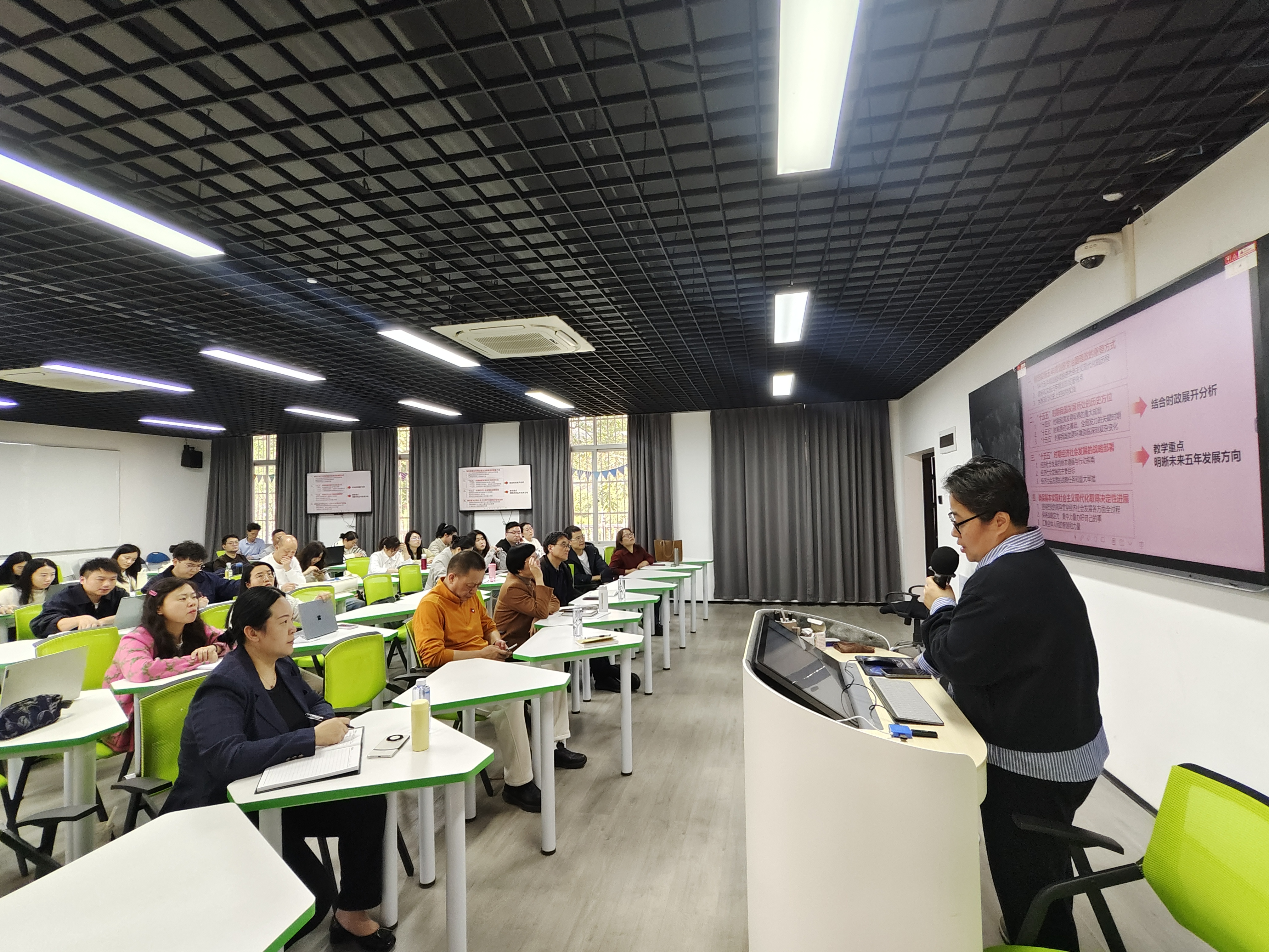 会上,罗斯怡老师围绕本学期《形势与政策》课程教学安排、专题设置、教学要求及相关注意事项进行了详细介绍。形势与政策课教研室教师分别围绕《乘势而上、接续推进中国式现代化》《新时代我国文化遗产保护的理念与实践》《深入推进数字中国建设》《在世界变局中推动构建新型大国关系》四大专题,从授课重点、备课思路、案例融入及教学方法等方面进行经验分享与交流展示。全体授课教师结合分享内容,就专题教学设计、课堂组织实施、课程思政融入等关键环节展开深入研讨,进一步凝聚教学共识、优化教学方案。