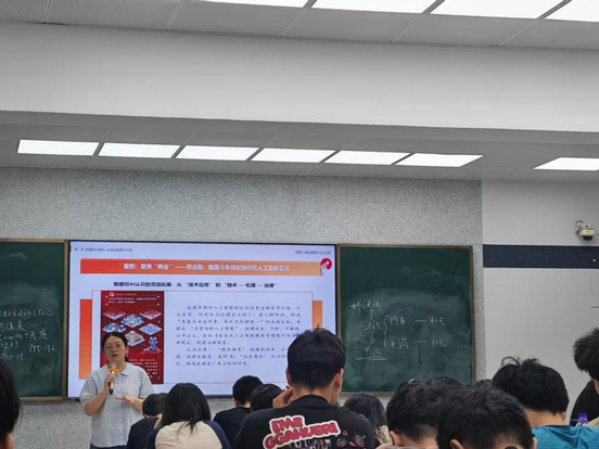 余老师以“量子攻坚:在实践中追寻科学真理”案例作为导入,运用问题链教学法、理论讲授与课堂讨论等方法相结合,启发学生运用马克思主义基本原理深入思考人工智能发展的时代价值。