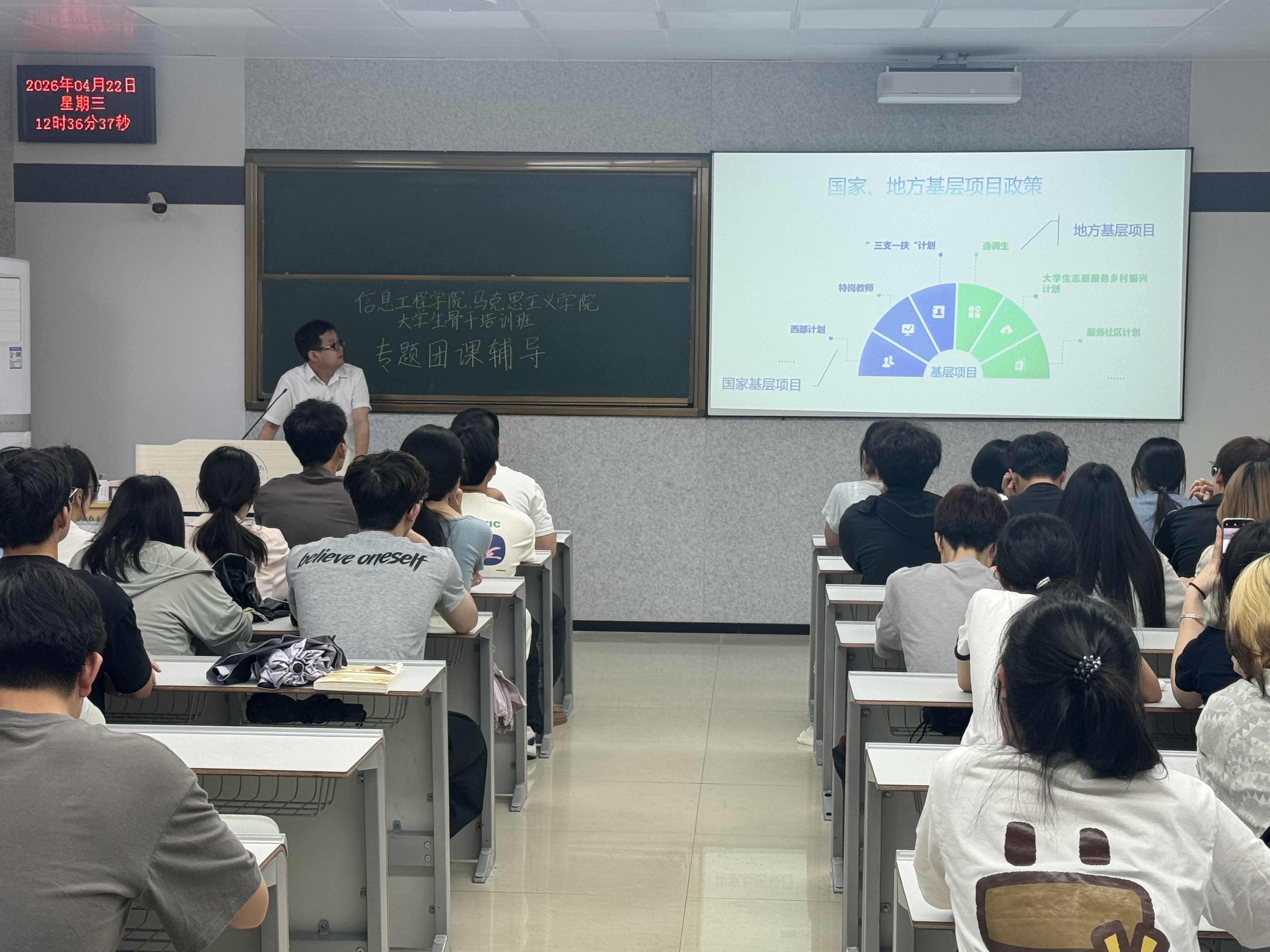 团课中,高辉老师围绕“基层项目微宣讲”展开系统讲解。他结合国家当前人才战略部署,详细介绍了大学生志愿服务西部计划、“三支一扶”计划、选调生、特岗教师、大学生村官等多项基层项目,鼓励学员们结合自身专业与兴趣,提前做好职业规划,勇于到基层一线磨砺意志、增长才干。