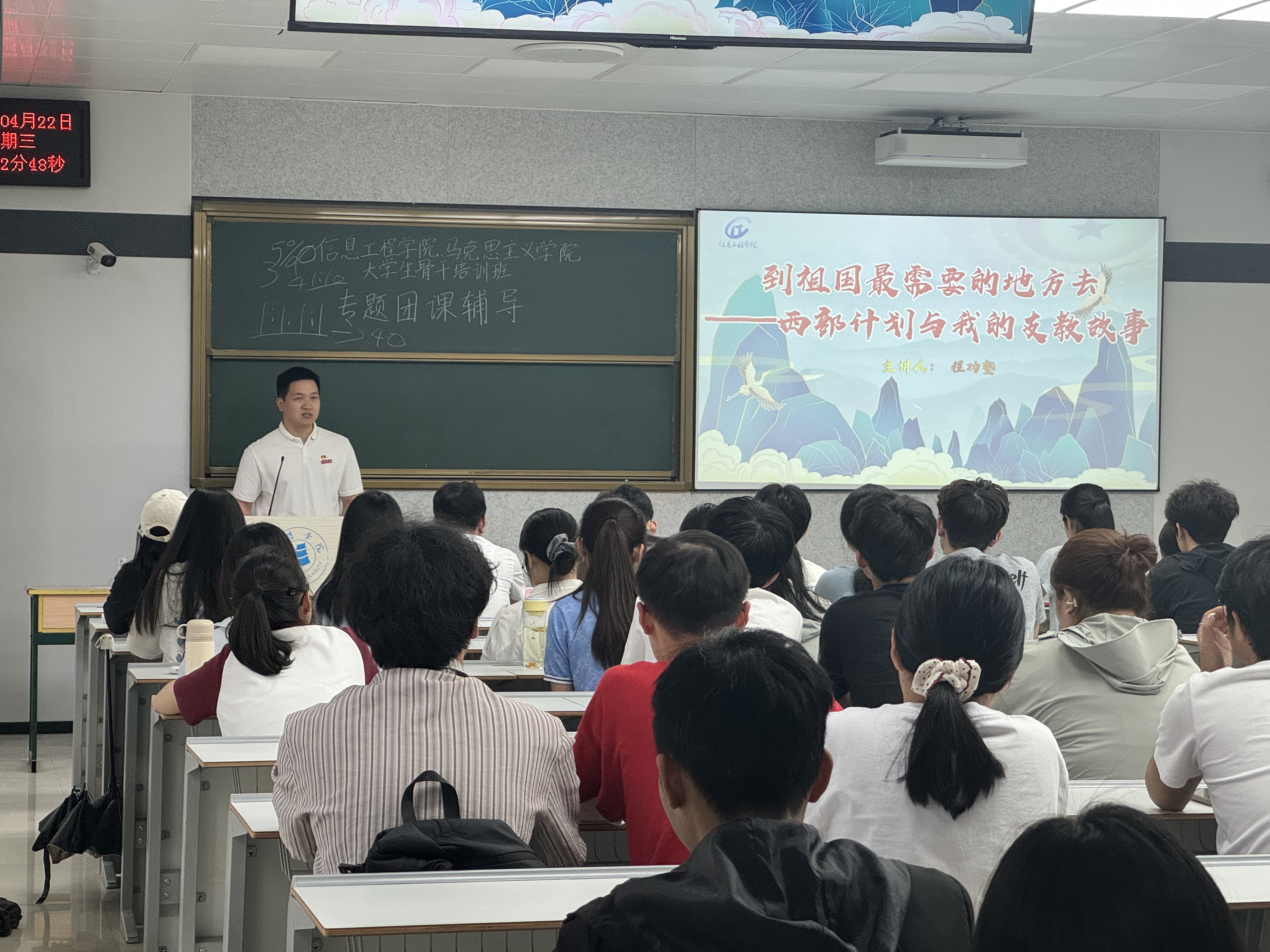 为引导青年学子厚植家国情怀、明确新时代大学生的责任与担当,4月22日中午,马克思主义学院与信息工程学院于博学楼205教室举办大学生骨干培训班专题团课辅导,由马克思主义学院团委副书记高辉和信息工程学院团委负责人程功塾分别主讲。