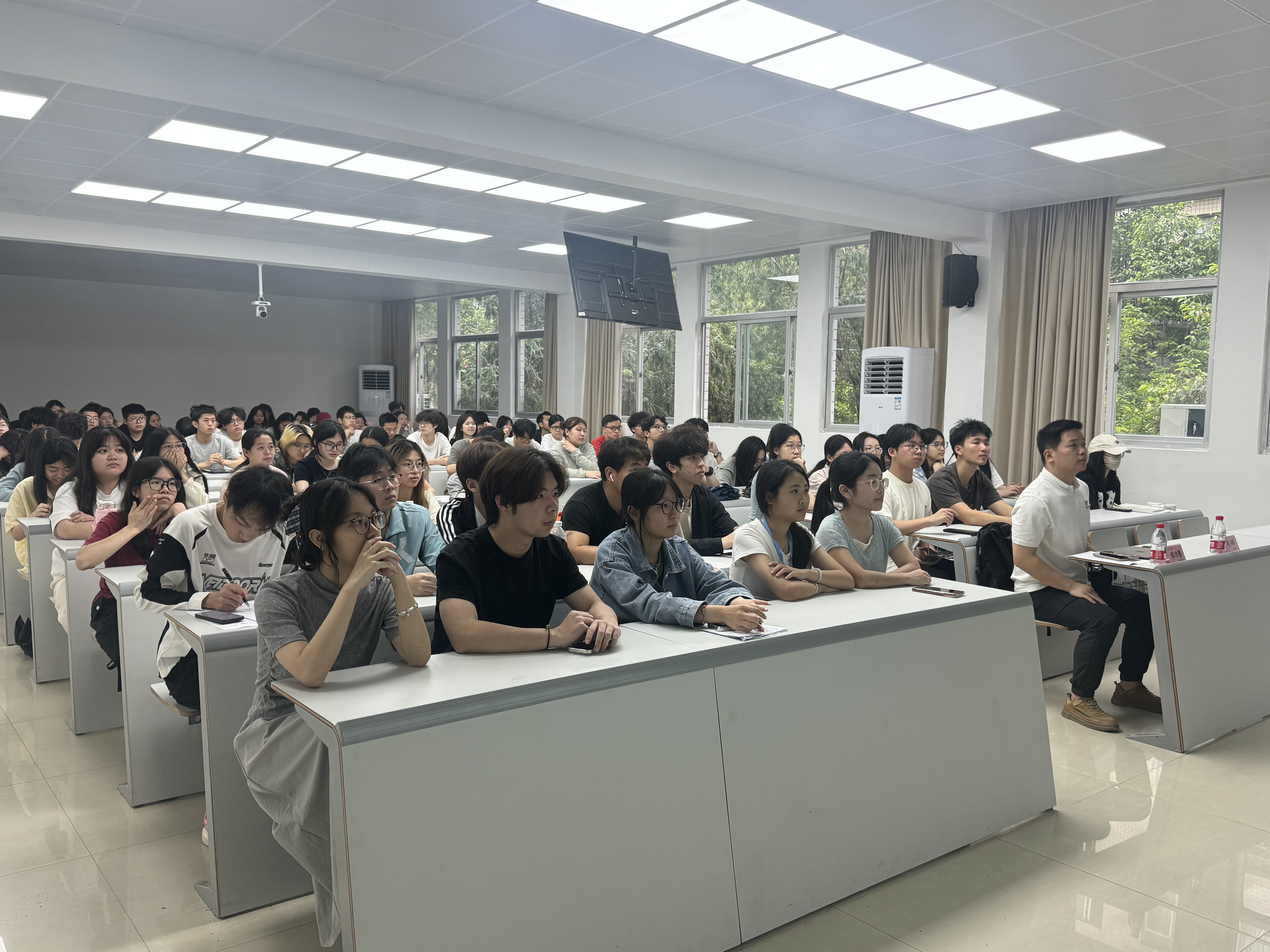 程功塾老师以“西部计划与我的支教故事”为题,分享了自己亲身参与西部计划的真实经历。他生动讲述了在艰苦环境中克服困难、与当地学生建立深厚情谊、组织开展教学与课外活动的点滴故事。程老师用朴实的语言还原了基层工作的酸甜苦辣,深刻诠释了“到祖国最需要的地方去”的精神内涵,并勉励同学们将个人成长与国家发展紧密相连。