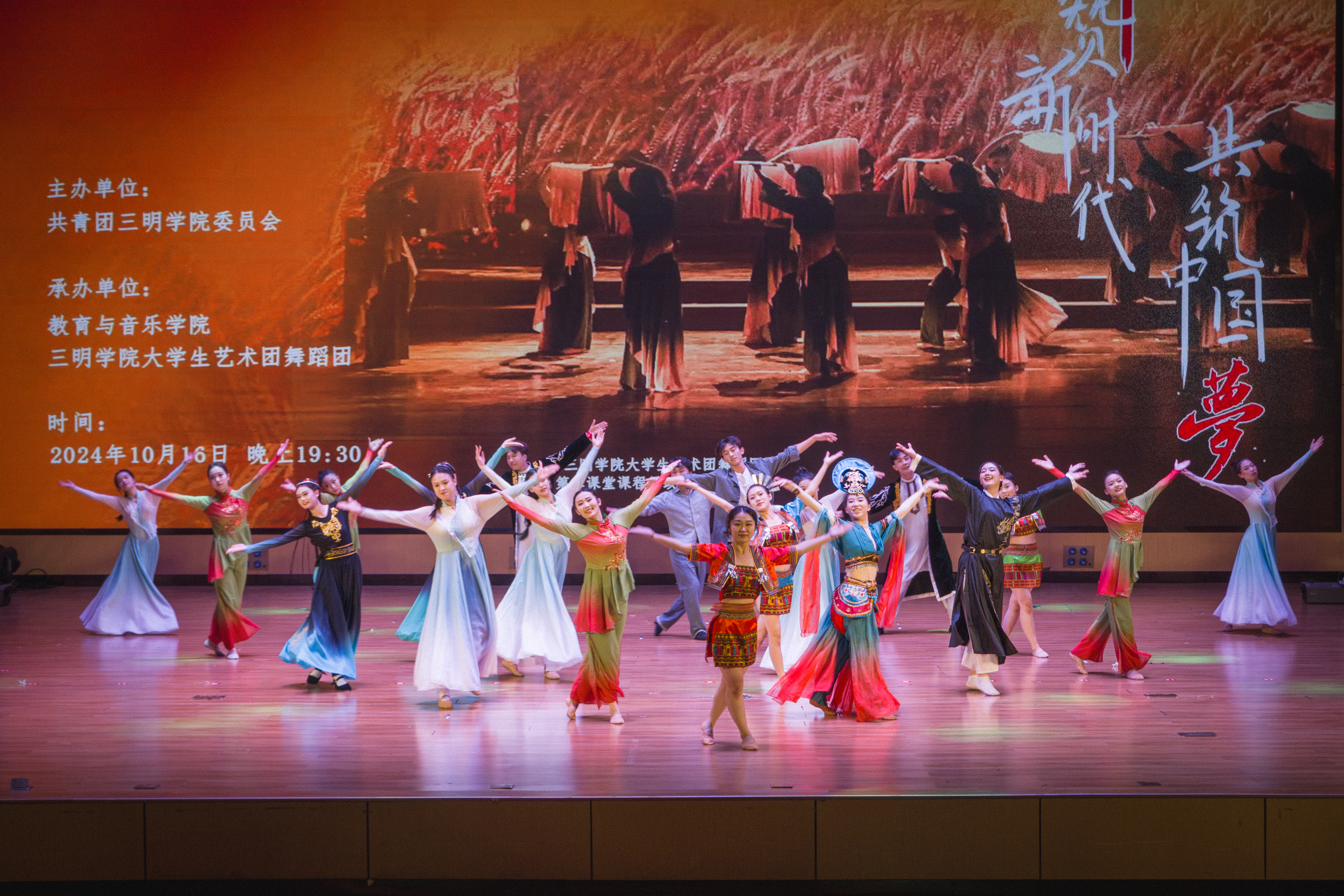 10月16日晚,由共青团三明学院委员会主办,教育与音乐学院、三明学院大学生艺术团舞蹈团承办的“舞赞新时代,共筑中国梦”大学生艺术团舞蹈团第二课堂课程思政教学成果展演在艺术楼音乐厅隆重举行。