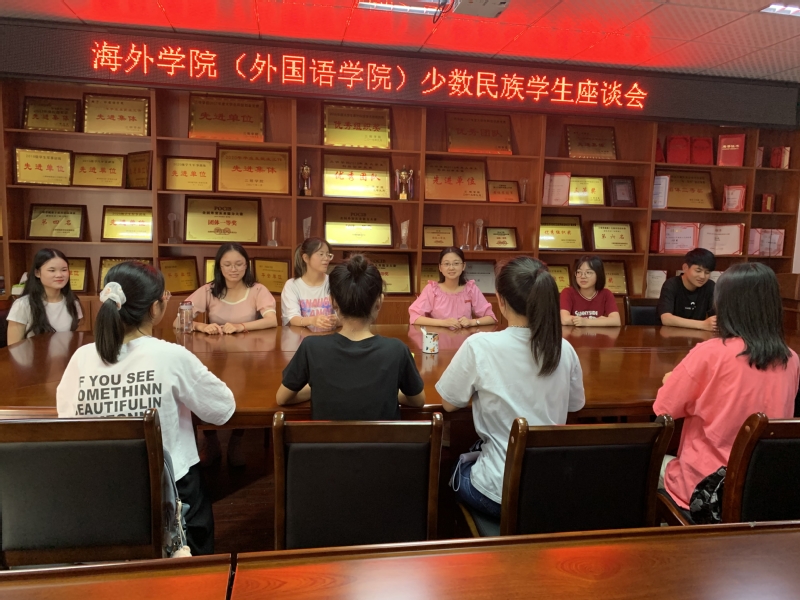 为更好地关注少数民族大学生的心理健康问题,促进少数民族学生健康成长,在“5·25心理健康教育月”之际,海外学院(外国语学院)于5月25日下午在外语楼3楼会议室开展以“关爱少数民族学生心理健康,共促民族团结进步”为主题的少数民族学生座谈会。