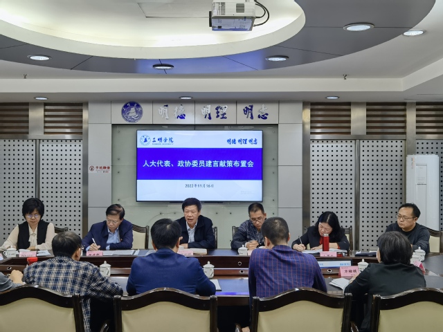 为充分发挥人大代表、政协委员参政议政、建言献策作用,推动学校高质量发展,11月16日下午,三明学院人大代表、政协委员建言献策布置会在行政楼六楼会议室召开。校党委委员、副校长谢松明出席会议,党政办、统战部、人事处、科技处(社科处)、后勤处、社会合作处,校内各级人大代表、政协委员参加会议。