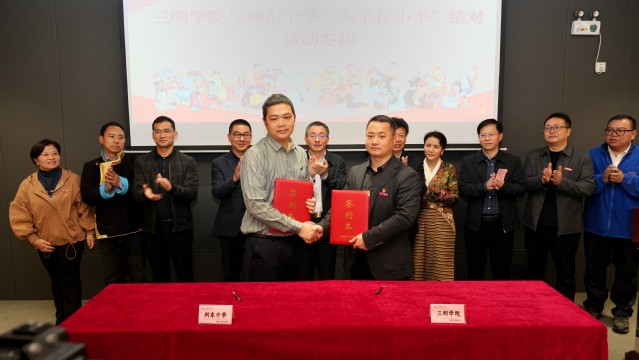 谢松明指出,三明学院作为福建省第一批民族团结进步重点单位和第九批全国民族团结进步示范单位,始终牢记习近平总书记关于“铸牢中华民族共同体意识”的重要指示精神,把推进民族团结进步同落实立德树人根本任务紧密结合,不断健全机制、创新活动,探索出一条促进各族学生共同团结友爱、共同学习进步的“三全育人”之路,有力促进各民族学生健康成长。他强调,列东中学西藏班作为福建省教育援藏重点项目,在推动民族教育事业发展、促进民族团结工作上积累了许多好做法、好经验,已成为三明市民族团结进步的一张亮丽名片。三明学院与列东中学有着深厚的历史渊源和传统友谊,为两校合作共建打下了坚实的基础。他希望双方积极发挥各自优势,加强教育交流合作,切实落实福建省教育厅关于开展“大手拉小手”活动的要求,努力将三明学院与列东中学西藏班的“民族团结大手拉小手”活动打造成民族团结进步教育品牌。