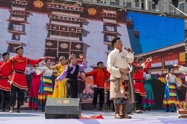 活动中,我校石榴籽工作室学生代表贤片尼玛等16名少数民族学子以歌伴舞的形式用藏汉双语共同深情的演绎了《再唱山歌给党听》,赢得了现场观众们的阵阵掌声。