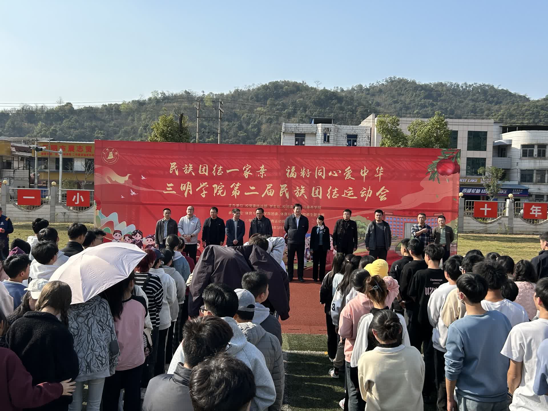 3月8日,三明学院第二届民族团结运动会在北区田径场举办。校党委委员、副校长吴龙,统战部、学生处、校团委,体育与康养学院负责人及各二级学院党委副书记参加开幕式。福建省委统战部副部长、省民族宗教厅党组书记、厅长兰明尚,新疆维吾尔自治区民族事务委员会党组副书记、主任马合木提·吾卜卡斯木,福建省政协民宗委主任林卫宠,共青团福建省委副书记张阿峰,福建省民族与宗教事务厅二级巡视员钟声,三明市政协副主席、民盟三明市委员会主委曾明生,三明学院党委书记赖锦隆、校长张君诚、副书记廖景榕等多位领导现场观摩。
