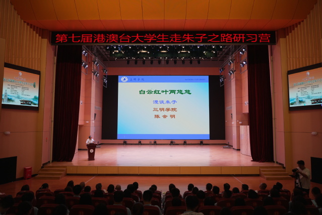 传承华夏先贤留下的文化经典,感受九万里东方文明辉煌。艺术楼音乐厅内,营员们一同聆听了三明学院文化传播学院陈会明教授带来的《白云红叶两悠悠———朱子漫谈》专题讲座,体悟朱子文化的深厚底蕴和丰富内涵。