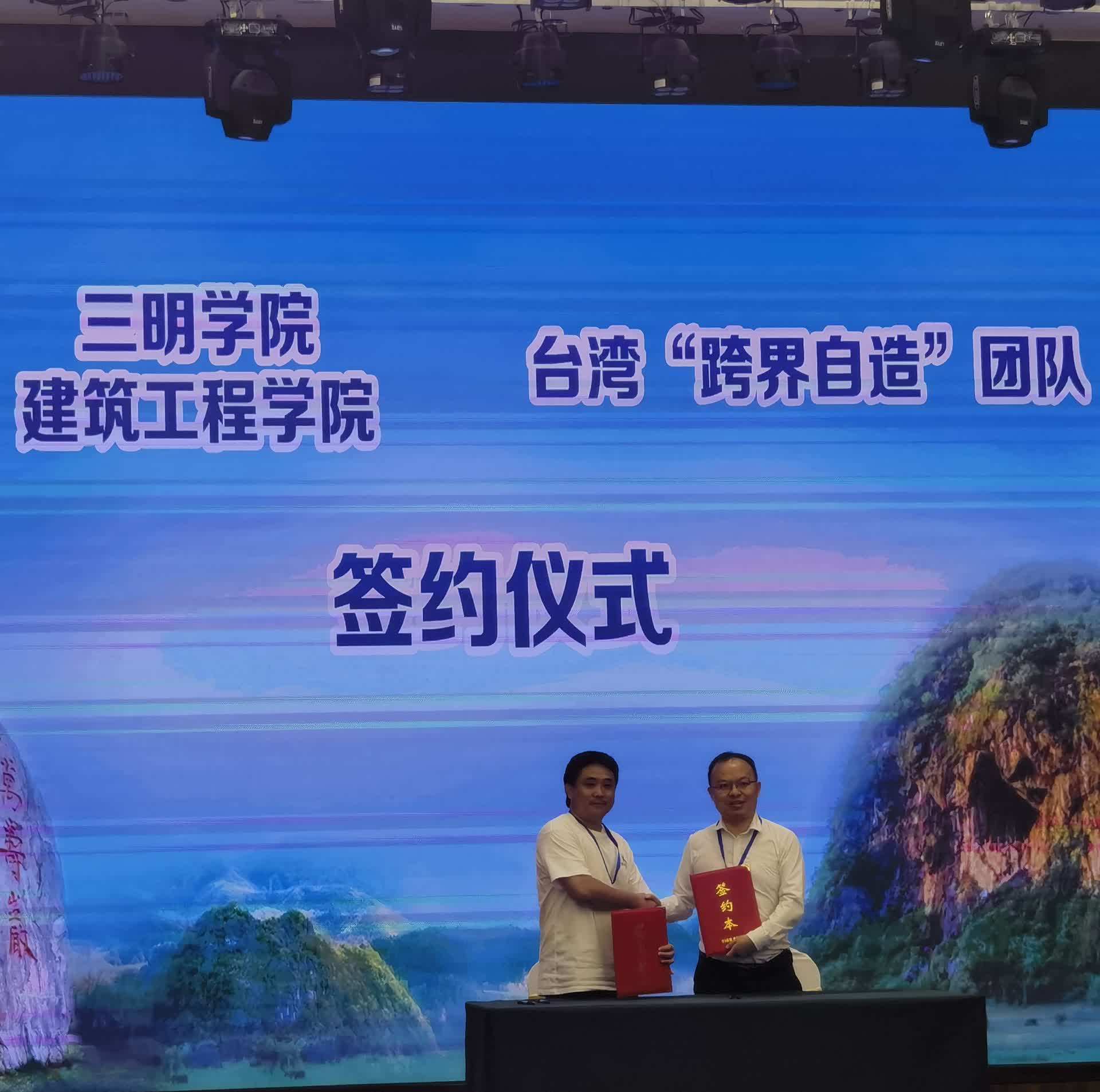 会议上,艺术与设计学院院长邱国鹏以三明学院作为地方一流应用型建设高校为例,就持续推动闽台合作与教育融合,积极探索两岸青年人才培养的融合发展新路建设,同与会嘉宾开展对话交流;建筑工程学院立足培养乡村振兴应用型人才,发挥学科专业优势与台湾“跨界自造”团队签订战略合作框架协议,共同助推海峡两岸乡村融合发展。