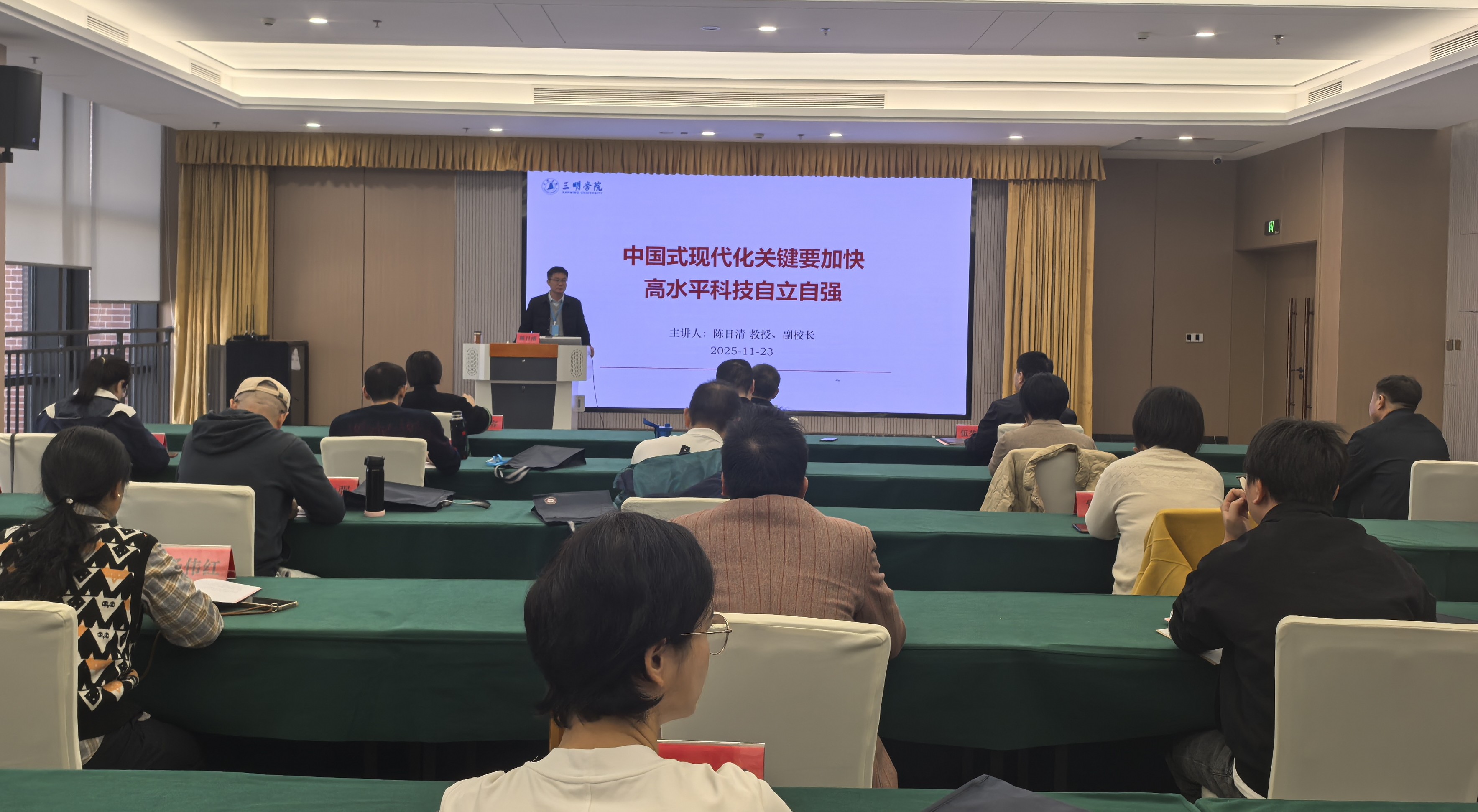 培训班紧扣时代脉搏,以系统化的理论教学夯实共同思想政治基础。校党委副书记、校长张君诚教授作了《二十届四中全会精神学习贯彻与学校事业发展》专题授课,深刻阐释了全会精神的核心要义,并紧密结合学校实际,阐述了将学习贯彻成果转化为推动学校高质量发展的具体路径。福建省委党校陈巧燕副教授以《深学笃行四中全会精神 接续推进中国式现代化》为题,为学员们进行了系统辅导和深度解读。副校长陈日清立足学校科研与人才工作,作了《中国式现代化关键要加快高水平科技自立自强》的辅导讲座,激发了学员们服务国家战略和区域发展的使命感。