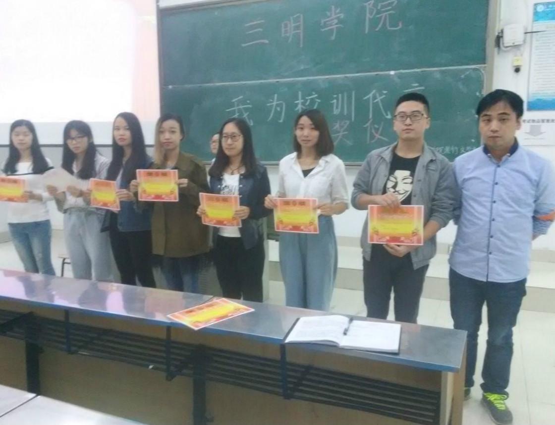 10月12日中午12:30分,由紫竹文学社承办的三明学院“我为校训代言”征文比赛颁奖典礼在鸿文楼301召开,出席了本次颁奖典礼的有吴智灵老师,除此之外,还有紫竹文学社的全体成员和获奖人员。