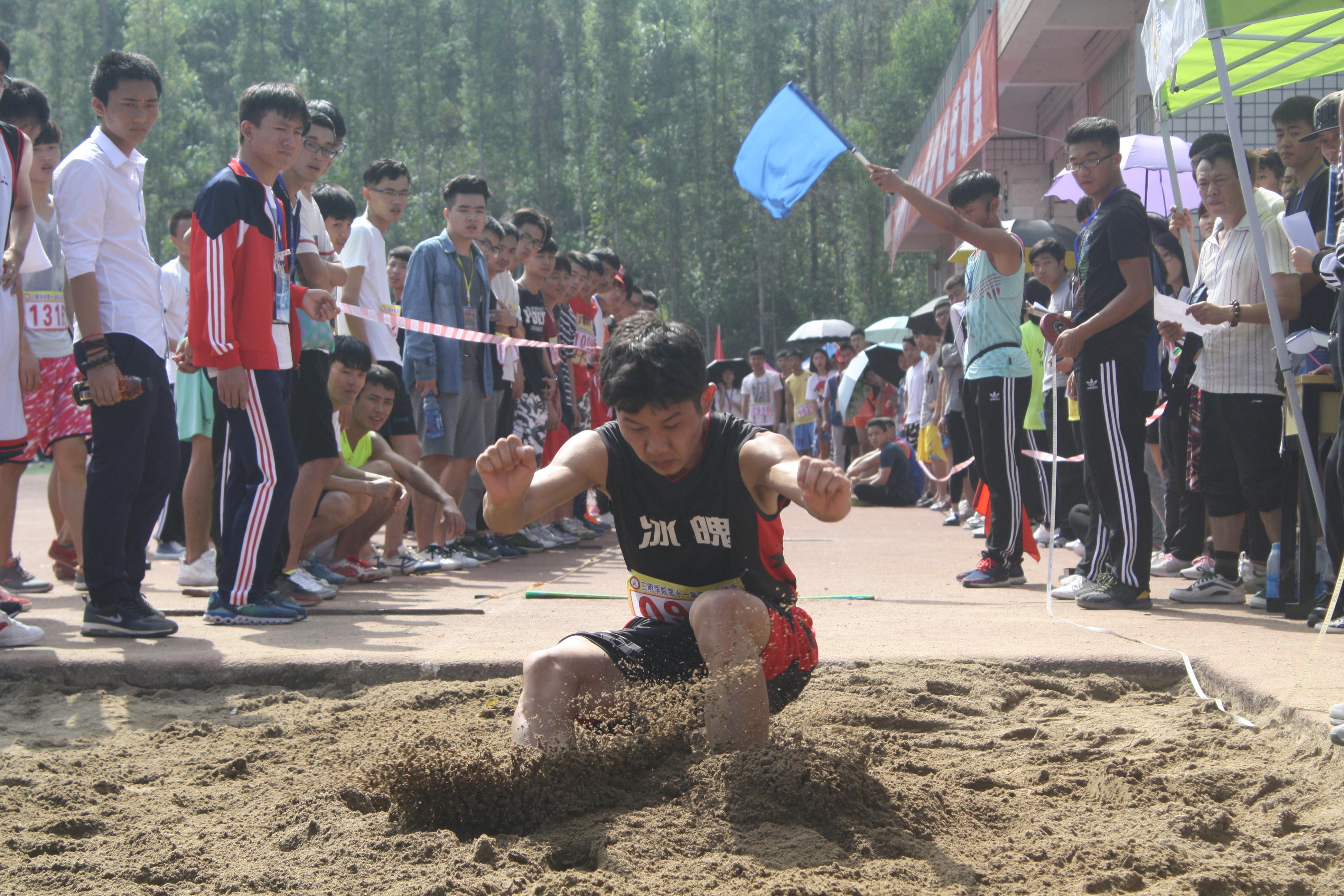 在我校历届运动会中,跳远都是最引人注目的焦点。一系列的准备运动后,比赛正式开始。运动员沿着直线助跑,在起跳板前纵身一跃,经过腾空后,用双足在落地在沙坑。面对强大的对手,田振霆和王彬洁同学也不甘示弱,在啦啦队的呐喊声中,越战越勇,沉着冷静,出色完成了跳远的技术动作,展现着属于自己的风采,充分发挥出了训练水平。