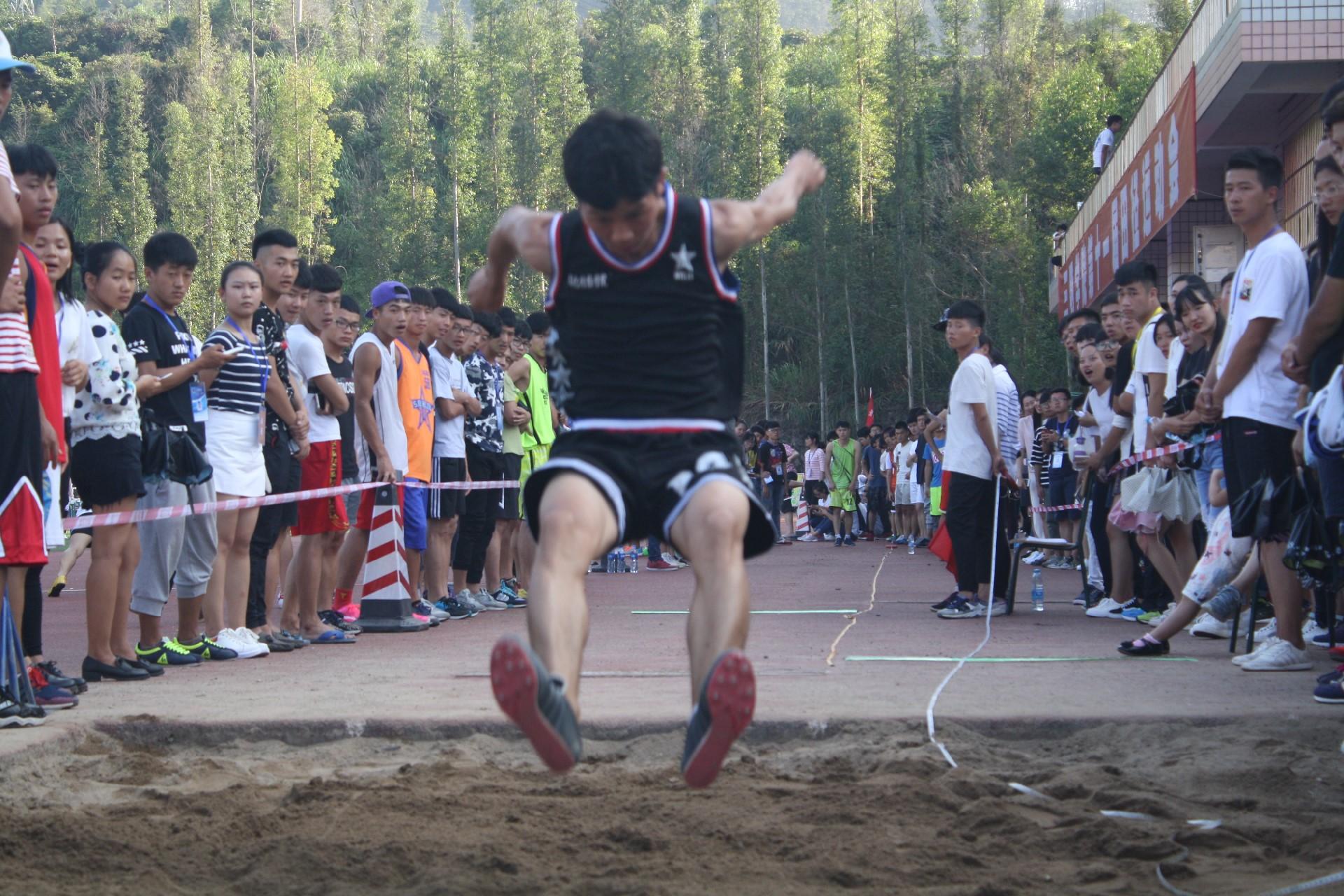 10月27日下午,男子三级跳远项目在田径场举行。即使是高温也阻挡不了同学们的热情,现场站满了来自各学院的同学们,分别为各自学院的选手加油,鼓励。
