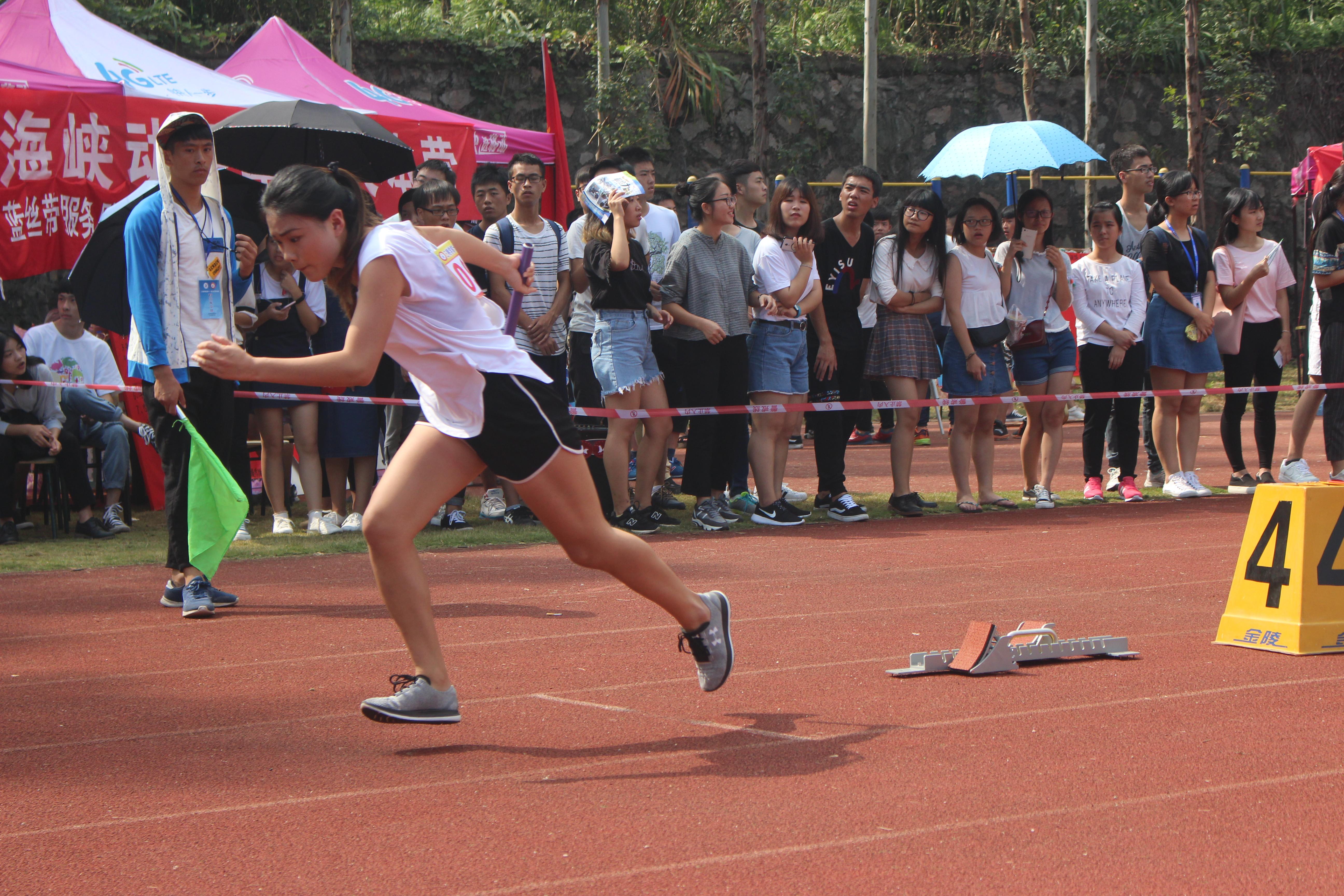 10月28日,三明学院第十一届校运动会进入最后一天,在短暂的等待过后,终于迎来了上午的最后一个项目:女子4x100米决赛。在丁蓉、王彬洁、林琳、张倍玮四人默契的配合下,她们一路过预赛,冲决赛。为文化传播学院在校运会团体赛上取得了第五名的好成绩。