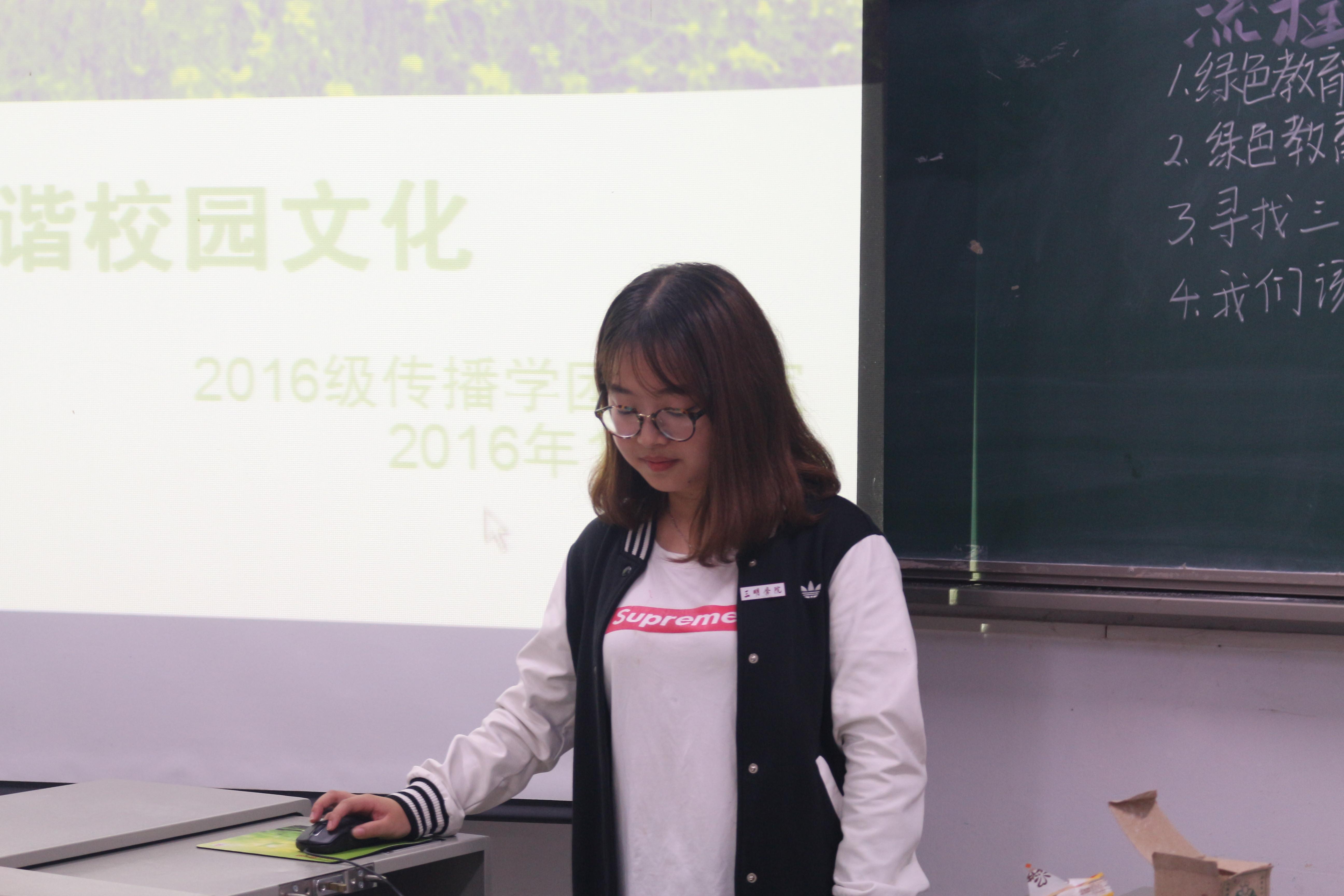 “绿色教育”是在充分考虑社会需要的前提下按教育规律而办的相关活动,引导人的内在因素合乎规律地全面而主动的发展。为了使同学们深入理解这一理念,11月6日晚7点,文化传播学院2016届的各个班级在鸿文楼开展了以“绿色教育理念”为主题的班会。