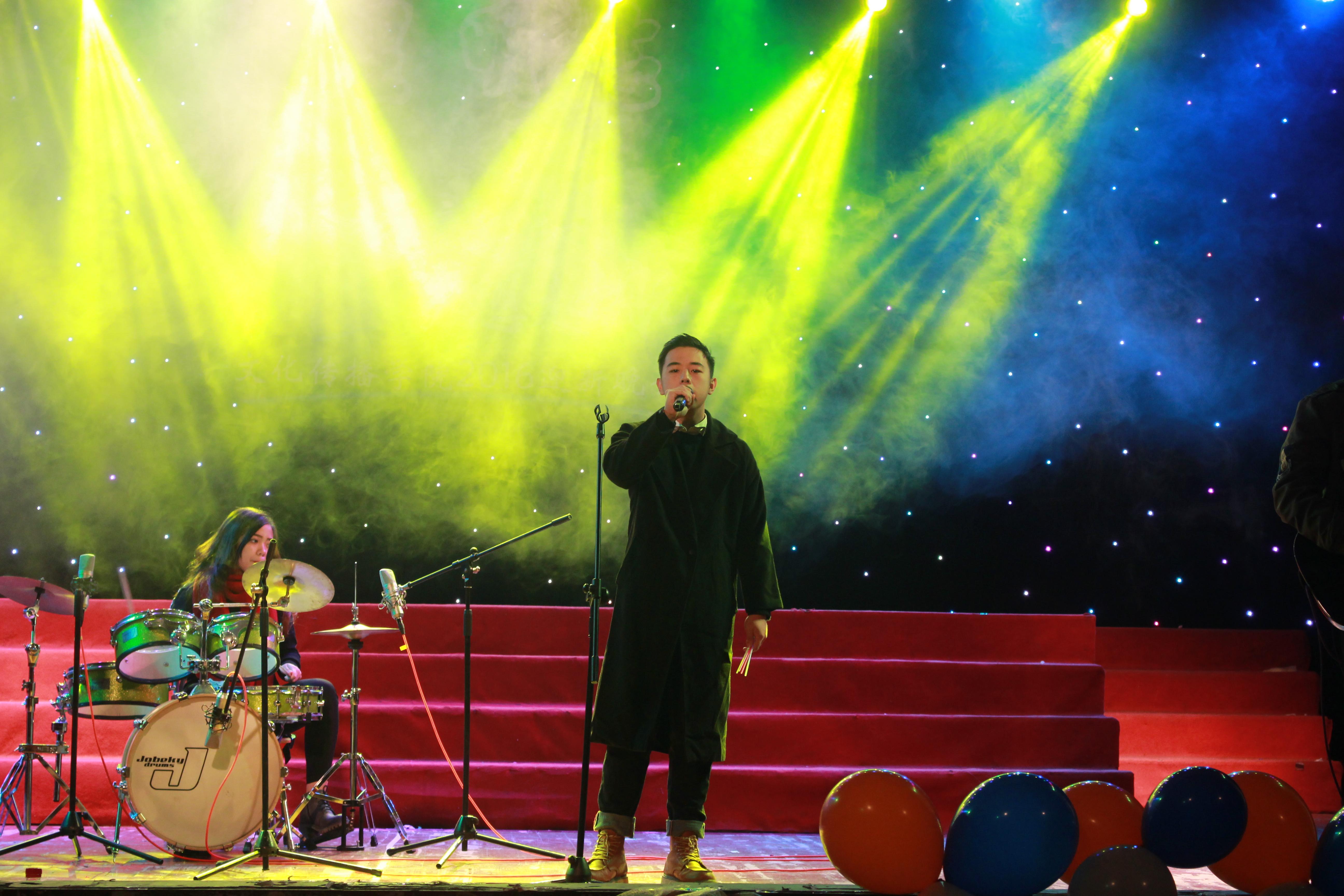 黑暗遮住了光亮,只留下舞台上歌手沙哑的声音,仿佛是轻声的低喃,伴着电吉他的弦音,前奏乐队以一曲《知足》拉响了迎新的乐章。在歌曲串烧中,16级播音与主持艺术班的三位男同学以娓娓之音深情地将一连串歌曲进行演唱, 并不时与观众们进行精彩互动,搏得了阵阵喝彩。掠影之间,灯光在观众场中聚焦,杨雪滢和陈子豪同学身着劲装亮相,在舞唱着走向舞台的过程中,以一曲《王妃》赢得了观众的热烈掌声。随着暖橙色灯光的逐渐亮起,《五月的鲜花》和《共筑中国梦》两首歌由雅乐合唱协会缓缓奏出,青春的旋律回荡在礼堂中久久不去。