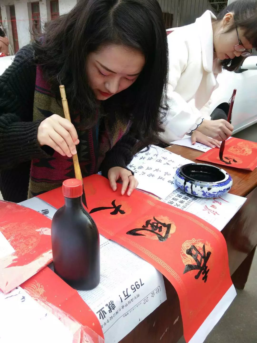 在临近新年的时候,各个地方都洋溢着春节浓浓的气息,本次活动是在云南省昭通市水富县两碗乡花坛村村委会的大力领导和组织下举办的,王丽娜以及一些其他高校的大学生参加了由花坛村村委会政府组织的“友谊共长久,春联传真情,义写春联”的活动,并且这场活动在花坛村委会大院如期举办。