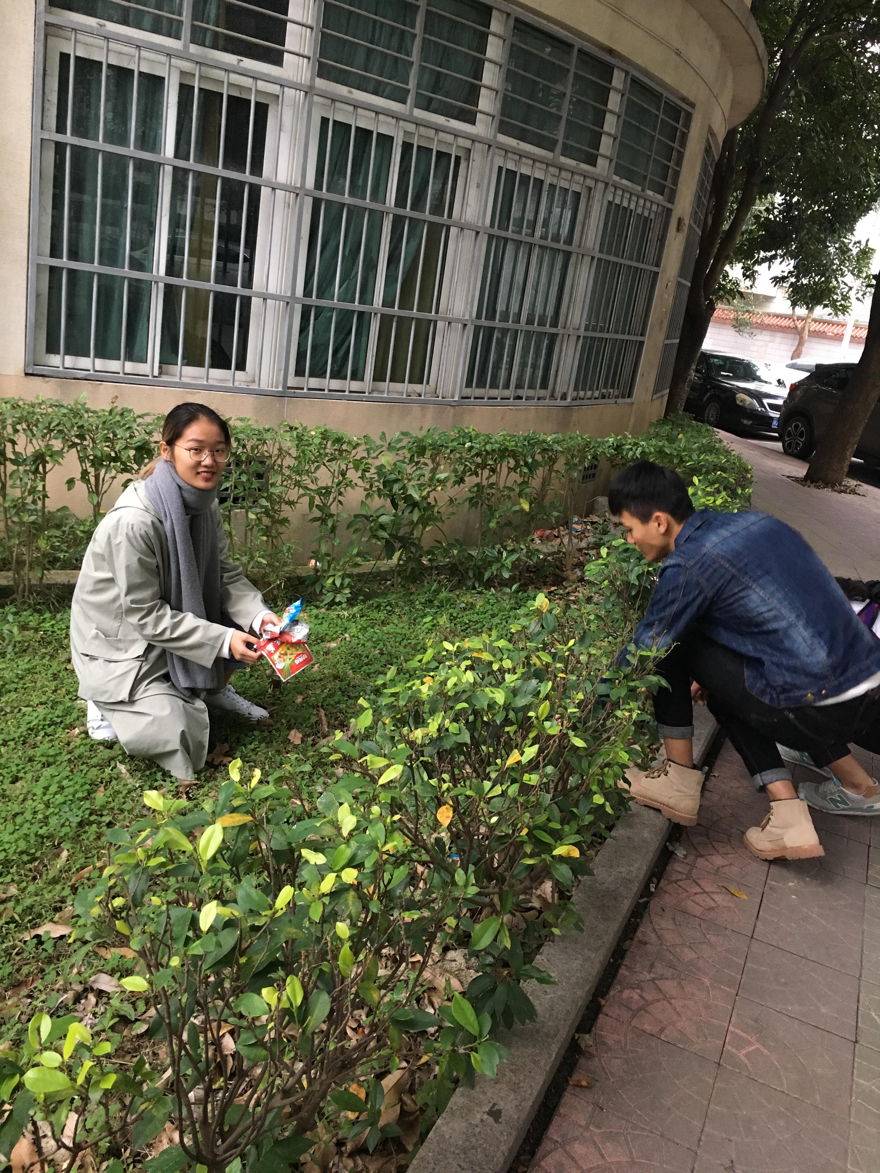 参与此次活动的同学们深深的认识到,这种乱丢垃圾的行为不仅仅加剧了环卫工人的清理难度,而且影响了土壤的洁净度。他们便一同在绿化带周围甚至进入绿化带中进行垃圾清理,将垃圾一个一个拾起,并投放到就近的垃圾桶内。