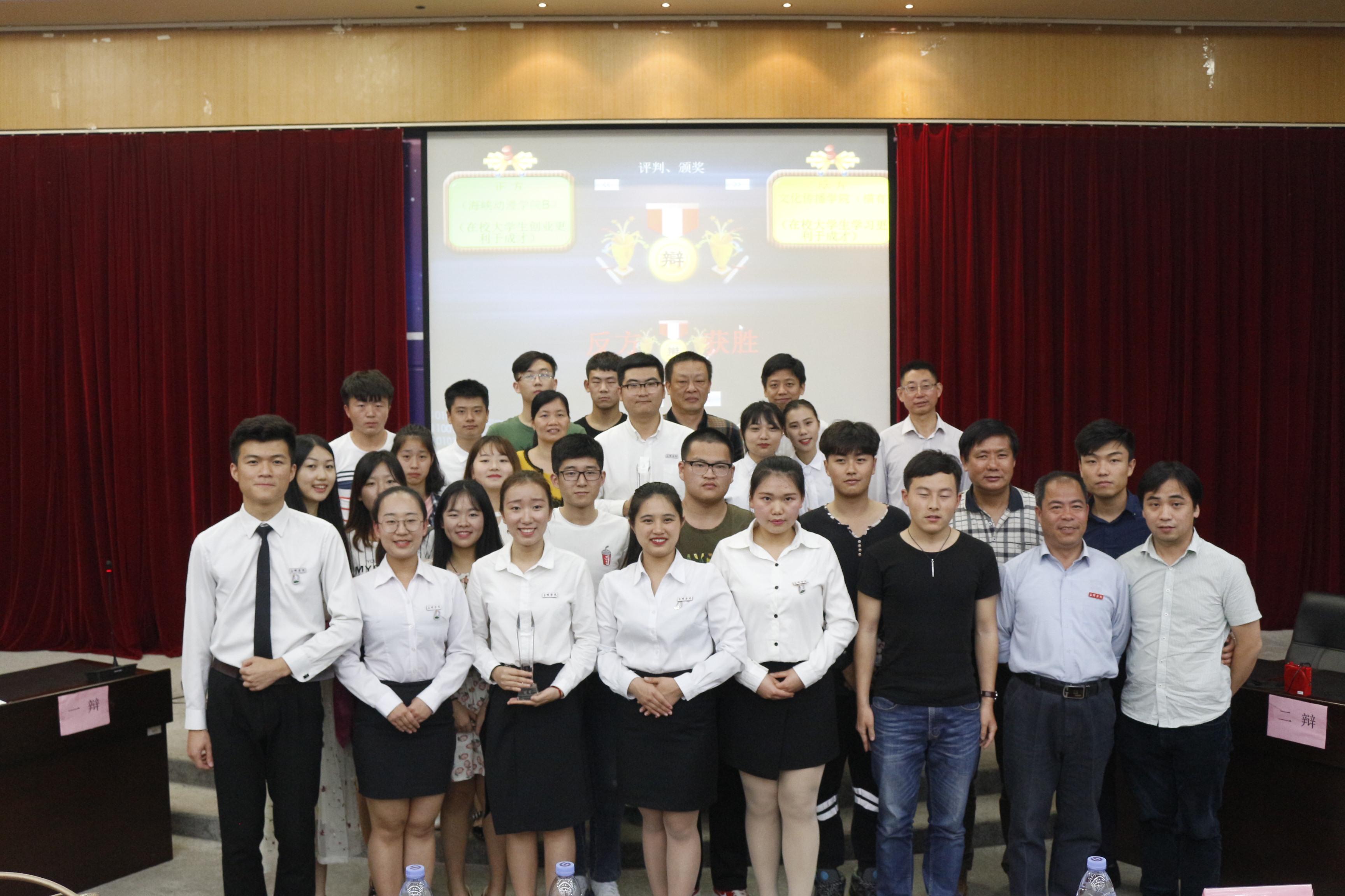 4月10日晚,由共青团三明学院委员会主办,共青团文化传播学院委员会承办的三明学院第十三届校园辩论赛总决赛在逸夫图书馆四楼学术报告厅举行。经过一个月的角逐,海峡动漫学院辩论队以及文化传播学院“横有八荒”组合最终脱颖而出。本次比赛有幸邀请到校党政办副主任陈荣辉、教育与音乐学院党总支副书记黄新周等老师担任评委。