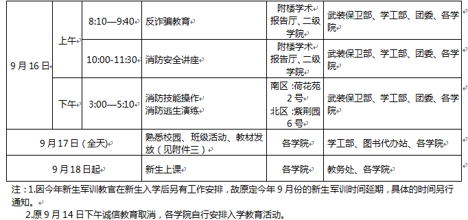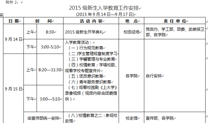 2015级新生入学教育工作安排