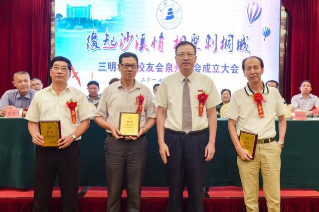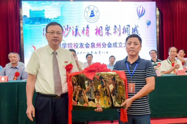 刘健校长为泉州校友分会会长颁发校友会牌