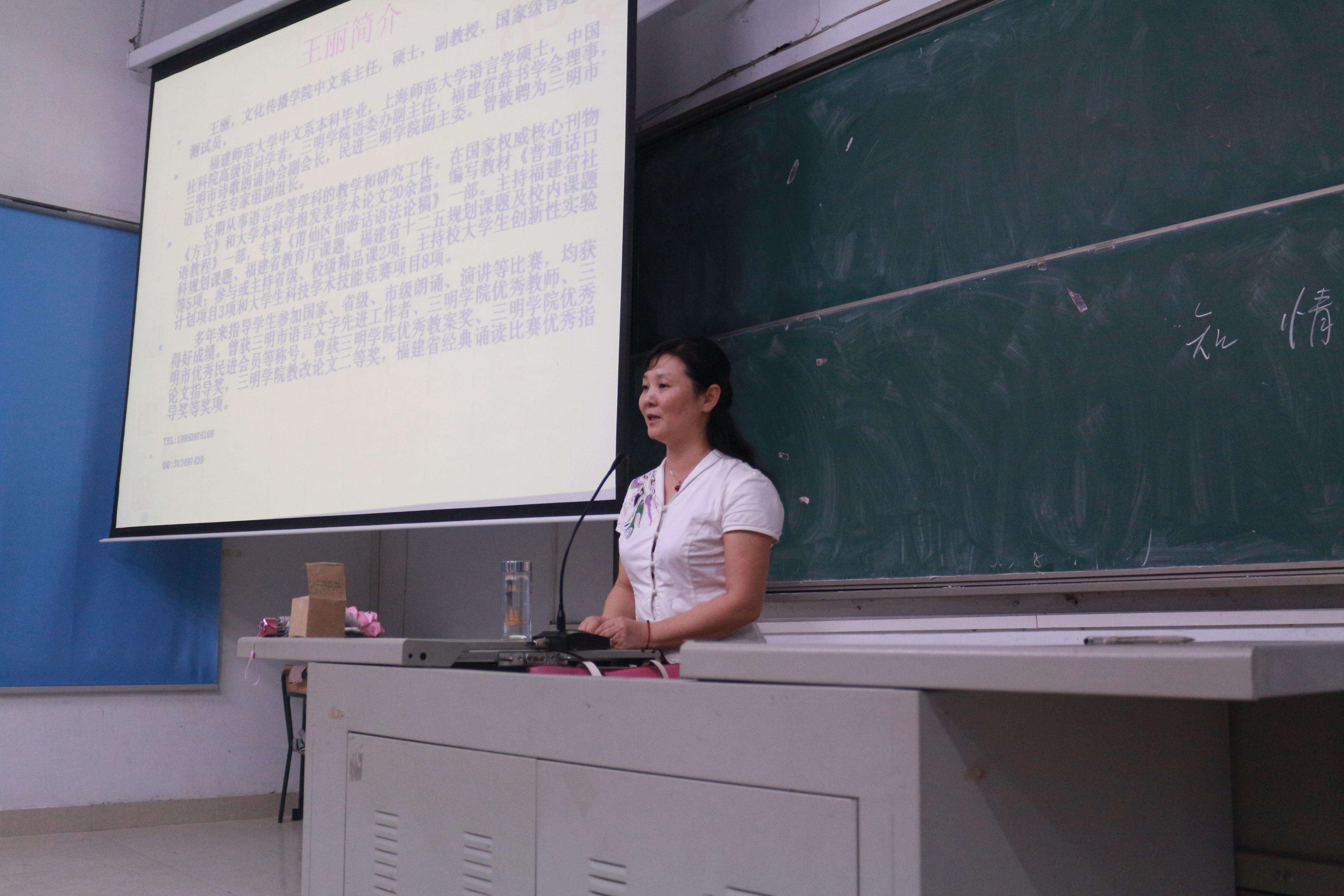 演讲伊始,王丽老师围绕“你要成为什么样的人?设想未来,你要怎么做?”这两个问题来展开演讲。她表示同学们不要盲目地崇拜偶像和权威,要有自己的主见和看法。同时鼓励同学们要有自己的特色特长,肯定自己的优点,正视自己的缺点。王丽老师的观点与建议得到了同学们的一致认同。在演讲的最后,王丽老师从专业和课程这两个方面为同学们讲解了文化传播学院的课程安排和专业就业方向。