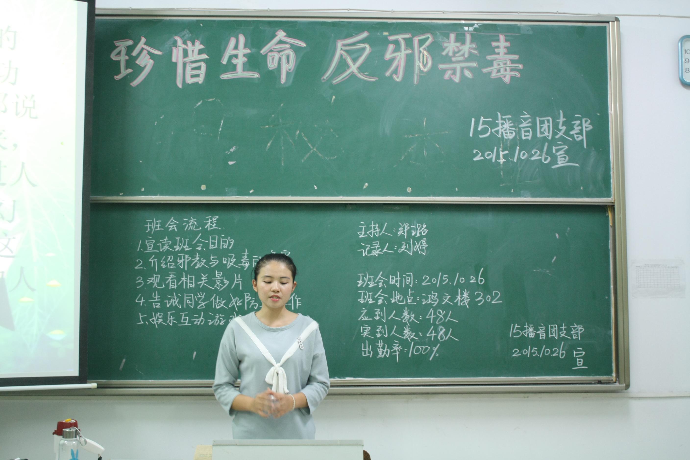 毒品涉及全世界,每年都会有许多人为它而丧生。毒品会让人失去理智,人格扭曲,变得贪婪堕落,给社会带来许多不安定的因素。为了进一步普及毒品与邪教的预防知识,增强同学们的自我保护意识,给同学们营造良好的学习生活环境,10月26日七点整,文化传播学院在鸿文楼202、203、303、304四个教室同时举办了以“珍爱生命,反邪禁毒”为主题的禁毒抵邪宣传班会。文化传播学院2015级全体新生参加了此次活动。
