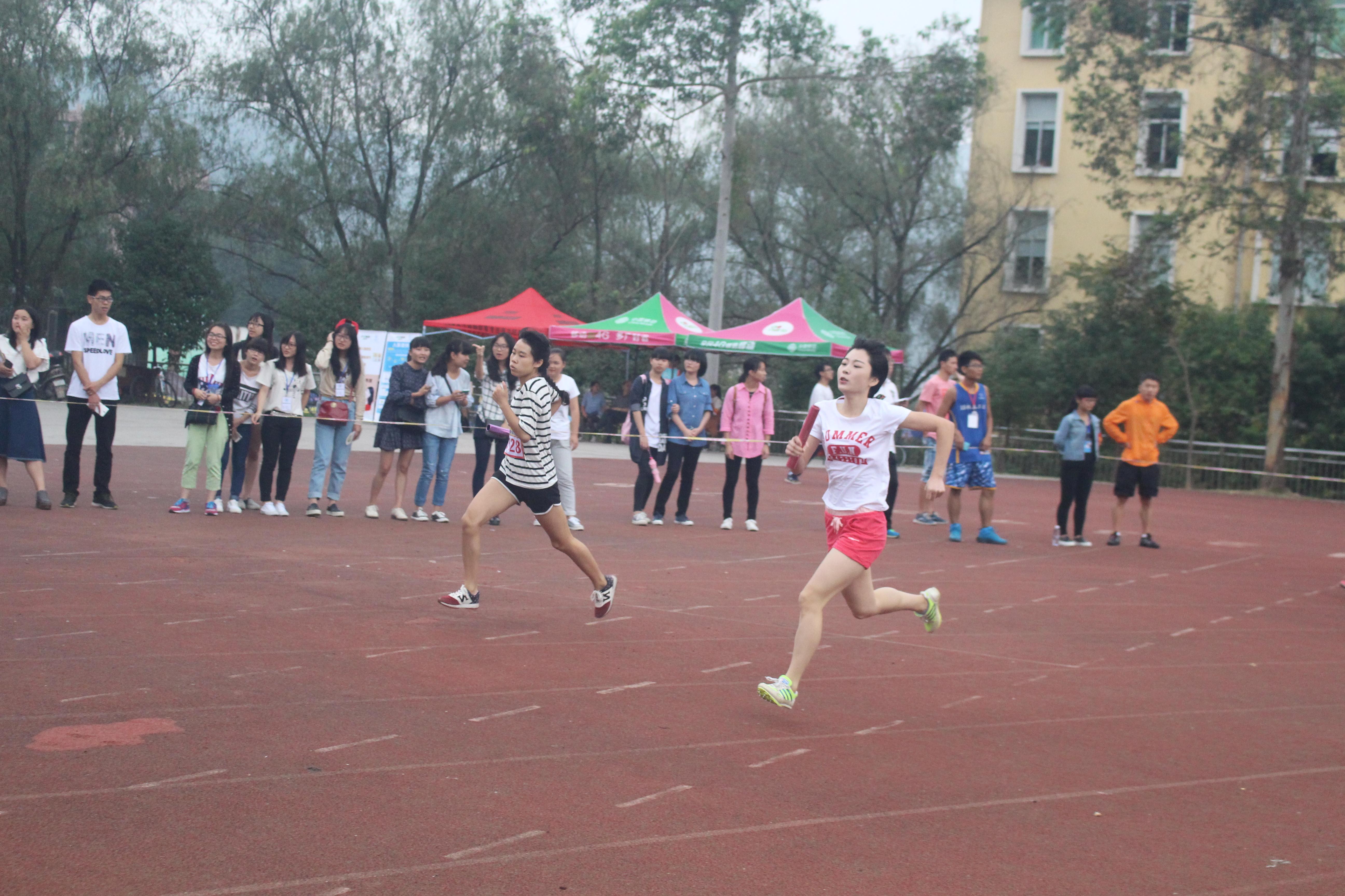 来自不同学院的女子团队在赤色的环形跑道上展开了最后的角逐。文化传播学院的四位女选手精神百倍,蓄势待发。伴随着一声枪响,作为第一棒的林琳像离弦的箭一般冲过起点,向接棒点奔去,当李若铱和丁蓉分别作为第二棒和第三棒接过接力棒时,跑道上各个选手的距离已愈发明显。一直到第四棒做出最后的冲刺时,管理学院选手快马加鞭,紧追不舍,与文化传播学院的黄文锦齐头并进,共同奋力的向终点冲去。400米是速度与耐力的较量,接力赛是团结与默契的比拼,虽然这场决赛竞争压力很大,但是文化传播学院的运动员坚持到底,一次次成功的将接力棒传递给下一位运动员,整场比赛,选手们团结一心,奋力拼搏,最后不负众望,赢得了第二名的好成绩。