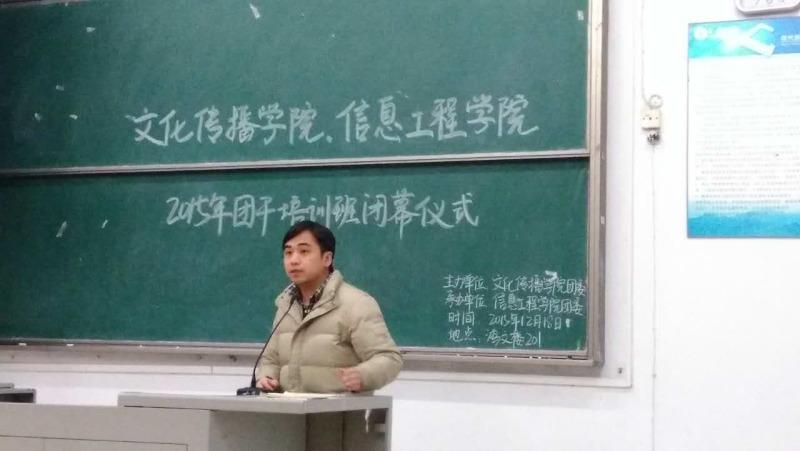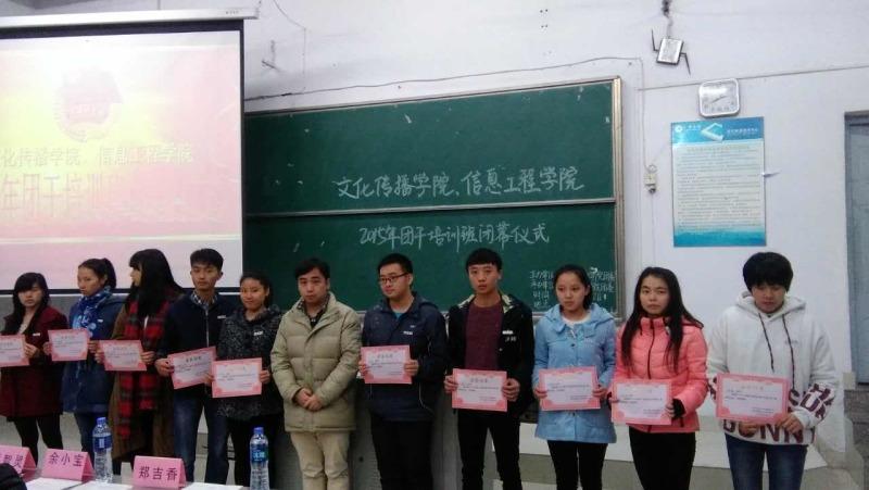 12月18日晚七点,文化传播学院与信息工程学院2015年团干培训班在鸿文楼201教室圆满落幕。出席本次活动的有文化传播学院与信息工程学院的老师以及全体参训人员。