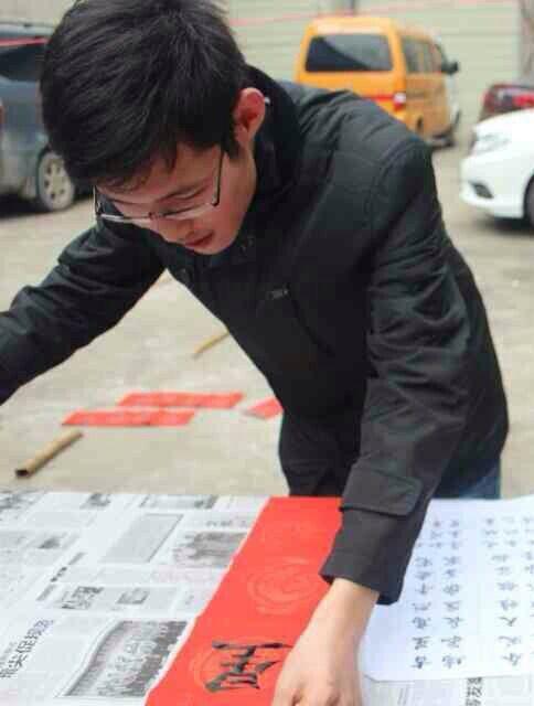 作为一名中共预备党员,冯阳阳同学积极响应学校号召,在家乡开展寒假社会实践活动。他利用所学到的书法知识,为家乡父老乡亲义务写春联,并通过送春联的方式为他们送去新春祝福。