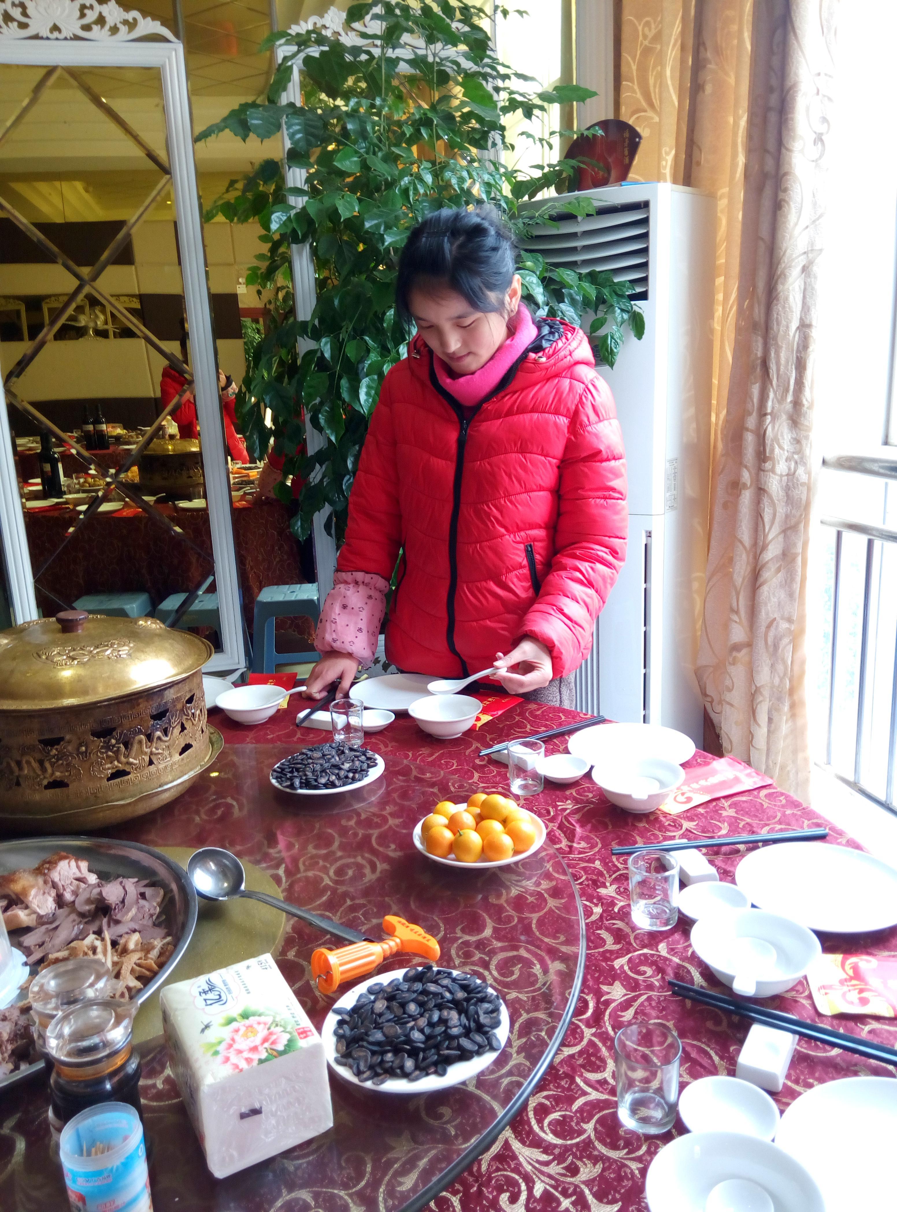 为了锻炼交际和服务能力,丰富假期生活,寒假初至,文化传播学院15级非师范班的吴晓静同学在一家海鲜酒楼找到一份餐饮服务的工作。