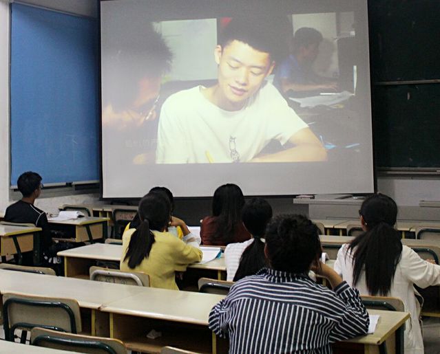 2017年10月17日晚7点,文化传播学院2017级新生在各班班长组织下观看学习旅游管理学院,机电工程学院,李克军等优秀学生的先进事迹的视频。