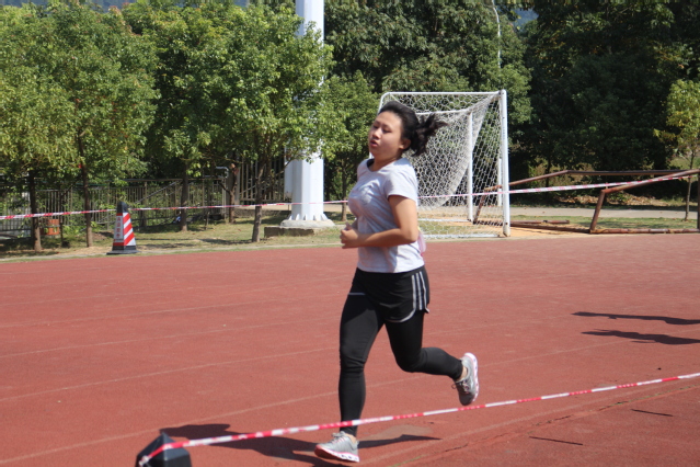 比赛前运动员们都积极做着热身运动来减轻对比赛的紧张感。随着发令枪的枪声响起,运动员们同时飞弹而出,向着同一终点奔驰。来自文化传播学院汉语言文学师范班的余晓欣同学,眼神中更是充满了坚毅。只见她稳中求进,在跑步过程中始终保持着平稳而飞快的速度。场上,运动员挥洒汗水,场下,文化传播学院的学子与老师卖力地加油呐喊,奋力敲击手中锣鼓,为奔跑中的运动员加油鼓劲。在赛道最后一百米,余晓欣同学开始加油冲刺奋力奔跑,为了自己学院的荣誉而奋力拼搏着。最终,她以坚韧的毅力完成了比赛,并获得了第五名的优异成绩.赛后,余晓欣同学表示,自己在今天挑战了自我,并说自己从未跑的像今天一样快过,赢得了同班同学的赞许与肯定。