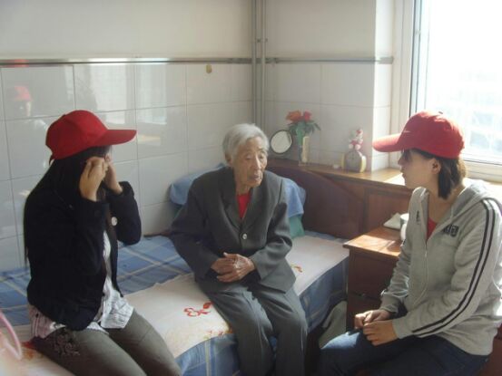 敬老院中的老人们同学们很是热情,大多数老爷爷老奶奶对同学们都是笑脸。还有一个年纪比较轻的奶奶还主动向同学们介绍这里的情况以及老人们一天的活动等。周丹同学也和一个老人扯起了家常,并谈了谈他的身体状况,聊了聊这里的生活,以及这里其他老人们的生活习惯等。简单聊天之后,同学们在这敬老院里帮忙扫地和整理院子。大家都很愉快。临近中午时,同学们向老人们告别,并且和他们合影留念,老人们很热情地挽留同学们吃午饭,只是同学们下午有人要赶车回家便婉言拒绝了,同学们承诺以后有时间还会回来敬老院看望老人们。
