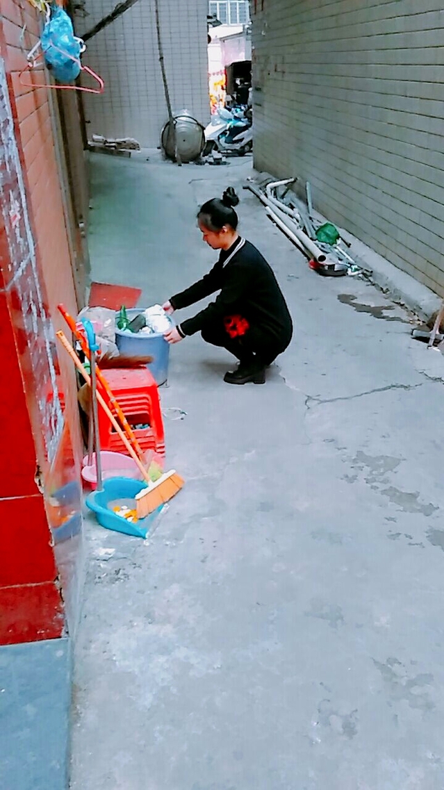 下午两点阙晓丽等大学生志愿者在新阳社区的广场前集合,开展了长达四小时的社区志愿服务。本次志愿服务分为三大内容:清理街道小广告,垃圾分类,关注社区残疾人士和老人。所有的志愿者在广场内分为三个小组,每个小组会有一位居委会阿姨作为负责人,阙晓丽被分到张阿姨负责的第二小组。在张阿姨为第二组志愿者布置好工作任务后,阙晓丽便带领着组员迅速投入社区服务中。志愿者们分工有序,有的志愿者用双手拔草丛里的杂草,有的志愿者用扫帚细心地将垃圾扫到一起。阙晓丽则清理贴满小广告的墙壁,严寒没有影响志愿者们工作的热情,大家都干得不亦乐乎。随后阙晓丽等人来到社区的残疾人和老人家中,志愿者们帮助他们整理内务,并与他们进行了深切地交流。