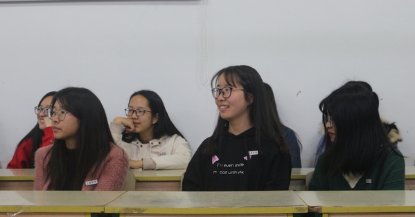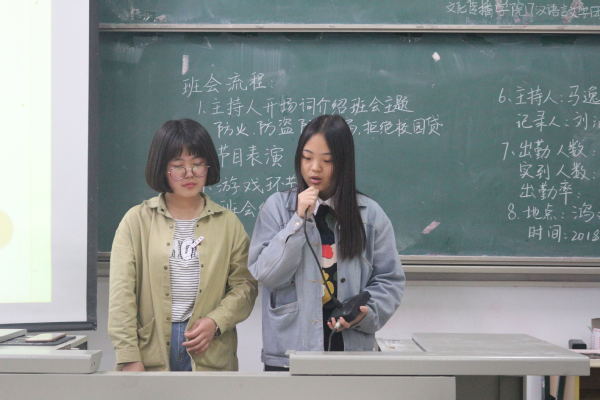 班会在主持人的简短介绍后正式开始,在303教室的汉语言文学(师范)班召开关于“防诈骗、校园贷、防邪教”的主题班会中,主讲人以风趣幽默的语言将防诈骗和校园贷的知识传递给同学们,让同学们在班会的学习过程中学会树立正确的消费观;汉语言文学(非师范)班的两位女主持人配合默契在304教室中对“防火、防盗”进行解释,并宣传有关防火、防盗的常识,主持人王萍同学通过举自己哥哥的相关例子,让同学们进一步认识到校园贷的危害;而在302教室的播音与主持艺术班的主题班会中,主持人则与同学们之间积极互动,用有趣的图片向同学们展示了交通安全在生活中的必要,气氛热闹非常;与此同时,在203教室举行班级会议的传播班的主讲人给同学们讲解禁毒活动的重要性,并播放了关于毒品教育的视频,让同学们深刻感受到了毒品的危害,更加坚定地对毒品说“不”。